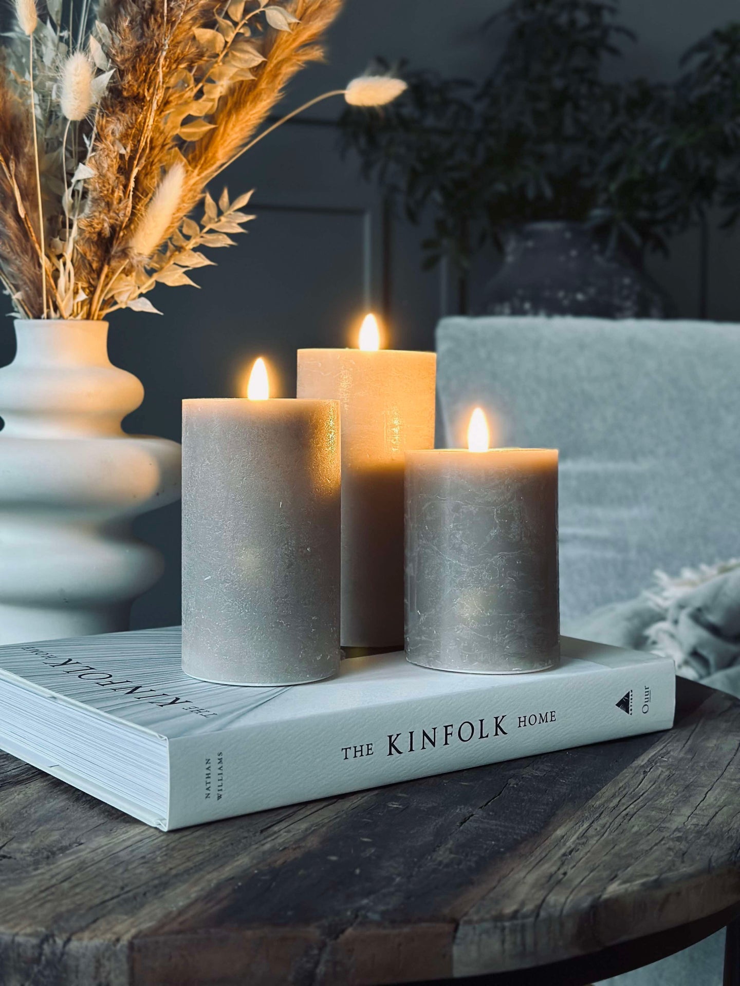 LED Blockljus / Sand – 3 st Rustikt ljus