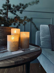 - Ljusens höjder är 10 cm, 12,5 cm och 15 cm med en diameter på 7,5 cm