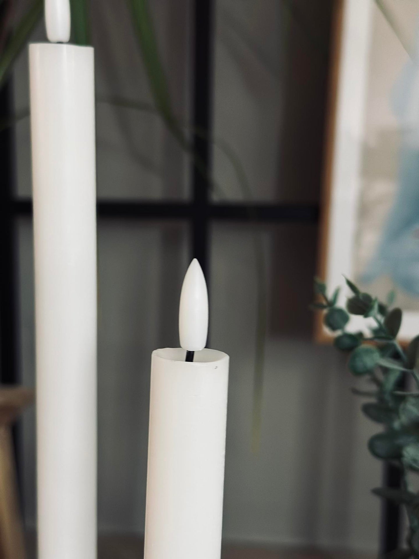- Paketet inkluderar 2 ljus (2,2 x 21,5 cm), 2 ljus (2,2 x 11 cm) och 4 värmeljus (diameter 2,5 cm)