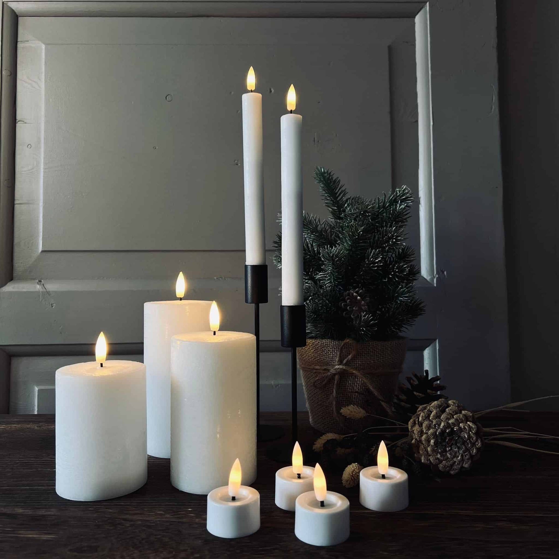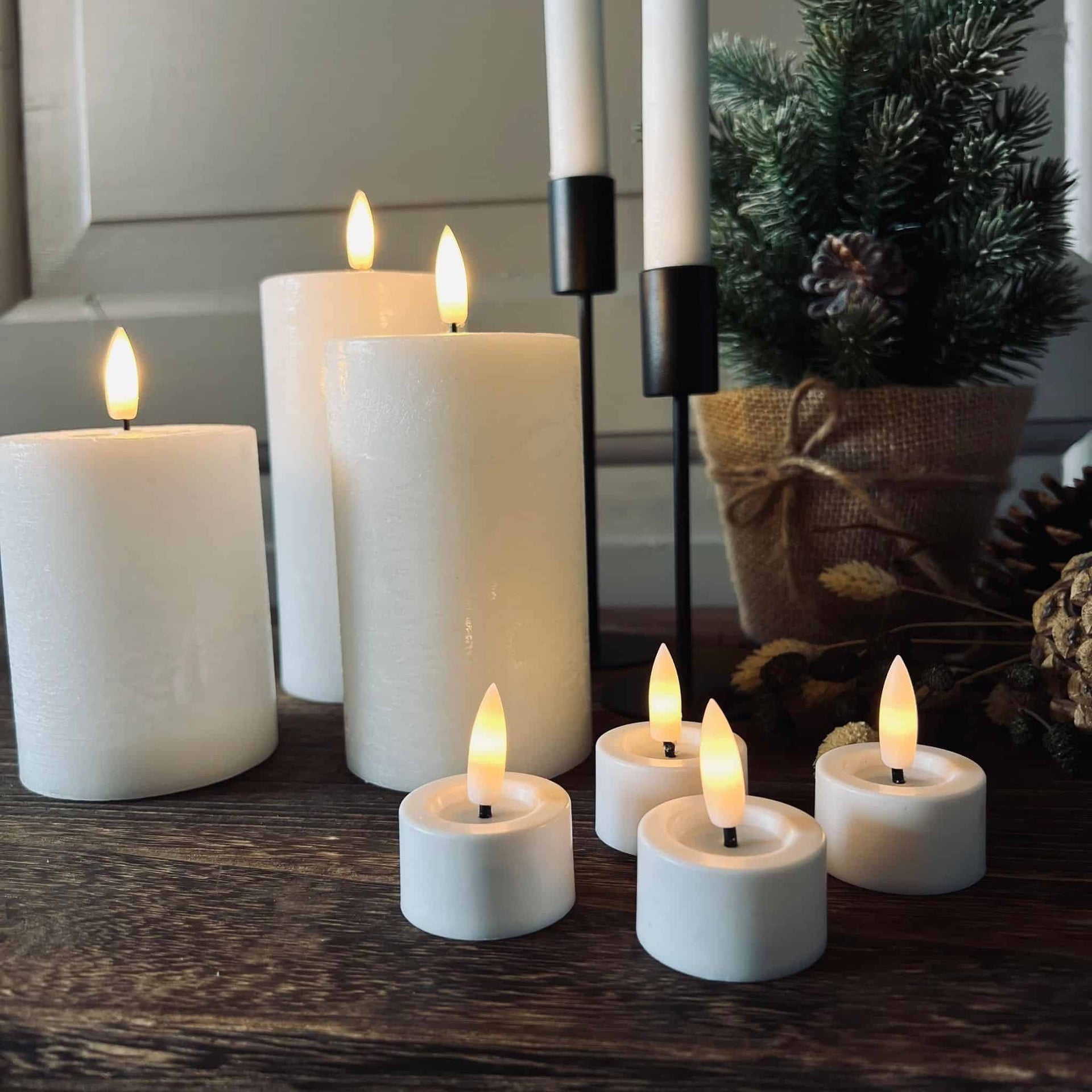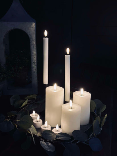 • 3 blockljus: H: 10, 12 och 15 cm (diameter: 7,5 cm)