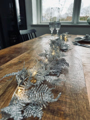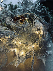 Ljusslinga SILVER med glitter är en mångsidig interiördetalj som förhöjer atmosfären i alla rum. Den erbjuder en subtil, men elegant touch till din inredning och skapar en mysig atmosfär med sitt varma vitt ljus. Inkluderar en timerfunktion för bekvämlighet.