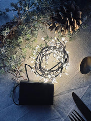LED-ljusslingan har en elegant design med svart tråd som ger en sofistikerad touch till din inredning. Den svarta tråden framhäver ljusets skönhet och skapar en unik atmosfär i ditt hem. LED-ljusslingan är inte bara en ljuskälla utan också en snygg detalj som kan förhöja stämningen i alla rum. Den är enkel att använda och drivs med batterier, vilket gör den flexibel och lätt att placera där du önskar.