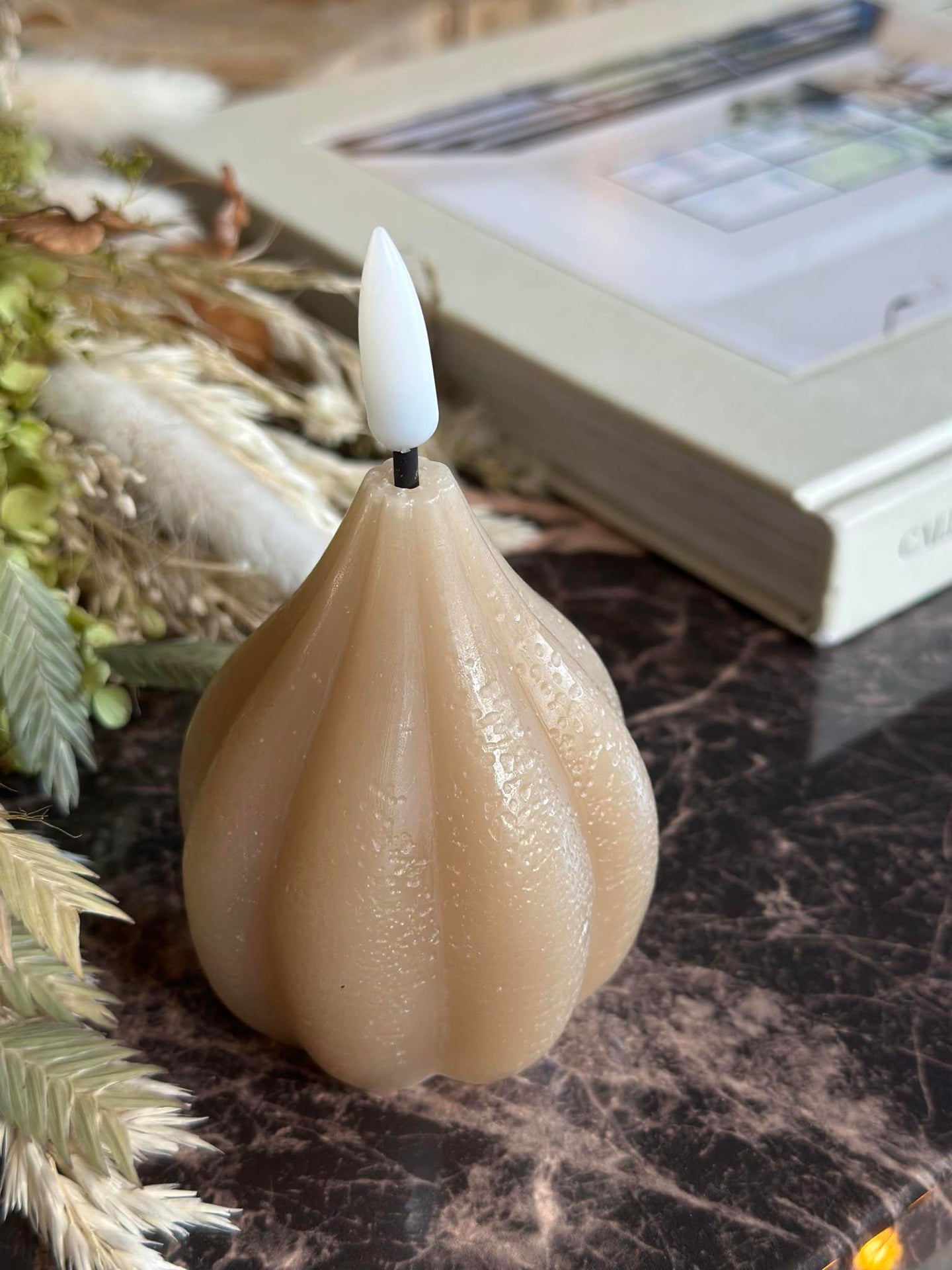 Ljusstaken är tillverkad av äkta vax, vilket ger en autentisk och varm atmosfär i hemmet. Den verklighetstrogna texturen och utseendet skapar en inbjudande miljö, som om du hade en traditionell stearinljuslåga. Denna kombination av modern teknik och klassiskt material säkerställer en säker och långvarig ljuskälla utan att kompromissa med stämningen.