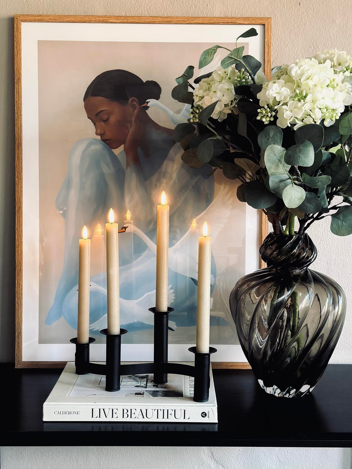 Stagelys LED med en varm vit flamma skapar en inbjudande och behaglig atmosfär i ditt hem under julen. Den mjuka belysningen efterliknar traditionella levande ljus och bidrar till en avslappnad och hemtrevlig känsla. Den varma vita färgen förstärker inredningens charm och passar utmärkt med juldekorationer, vilket gör den till ett utmärkt val för att förhöja högtidens stämning.