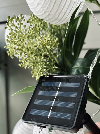 Skapa en mysig atmosfär i ditt uterum, växthus eller orangeri med denna LED solcell ljusslinga. Med dess varmvita kulor, bidrar den till en inbjudande miljö, samtidigt som den är miljövänlig eftersom den drivs av solenergi.
