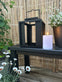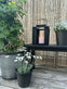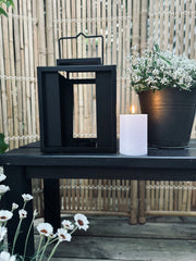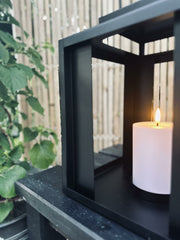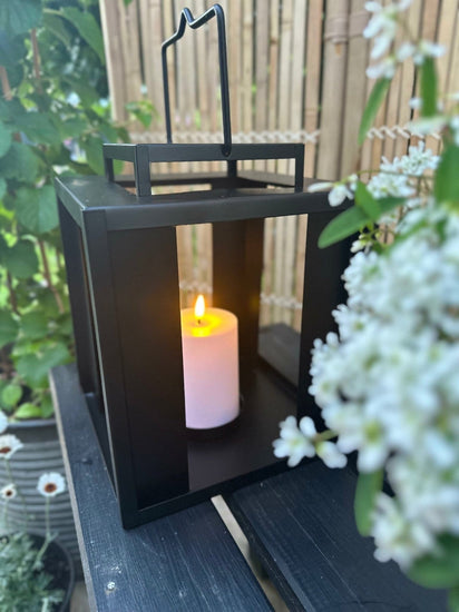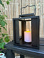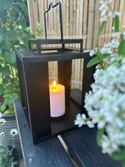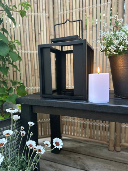 • Stilren och dekorativ utomhuslykta utan glas, inkluderar ett LED-blockljus