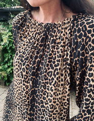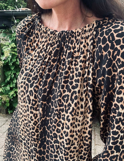 Vår leopardklänning är tillverkad av 100 % viskos, ett material som är känt för sin mjukhet och komfort. Viskos är ett andningsbart material, vilket gör klänningen idealisk för varmare dagar. Dessutom är viskos känt för sin förmåga att behålla färg och mönster väl, vilket bidrar till att klänningens leopardmönster förblir levande och klart även efter flera tvättar.