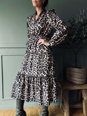 Letar du efter en bekväm och stilren klänning som passar för flera tillfällen? Denna leopardmönstrade klänning erbjuder både komfort och en smickrande passform, vilket gör den idealisk för vardagsbruk eller en kväll ute.