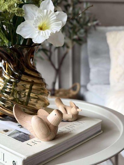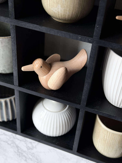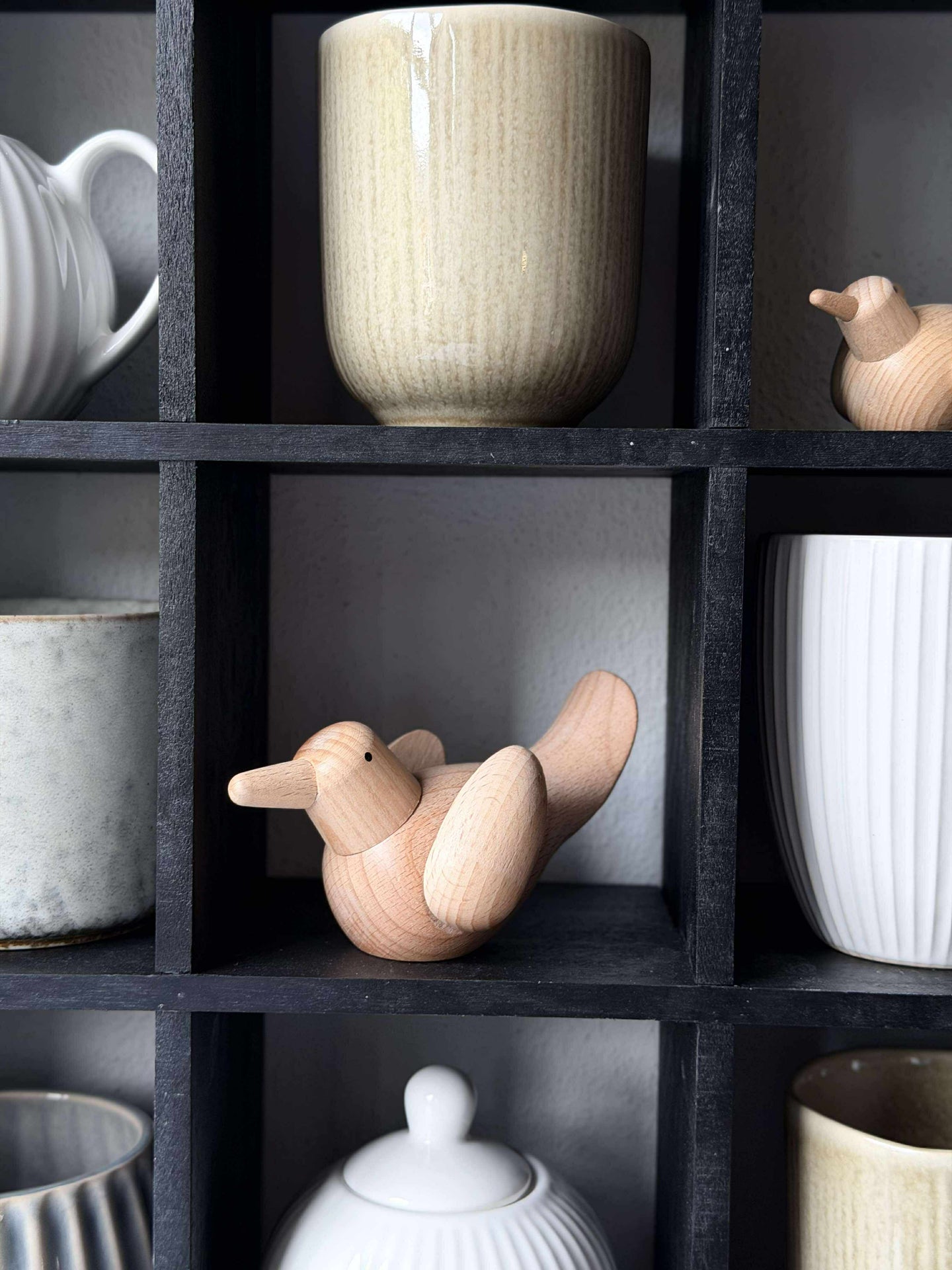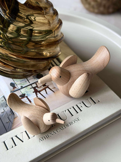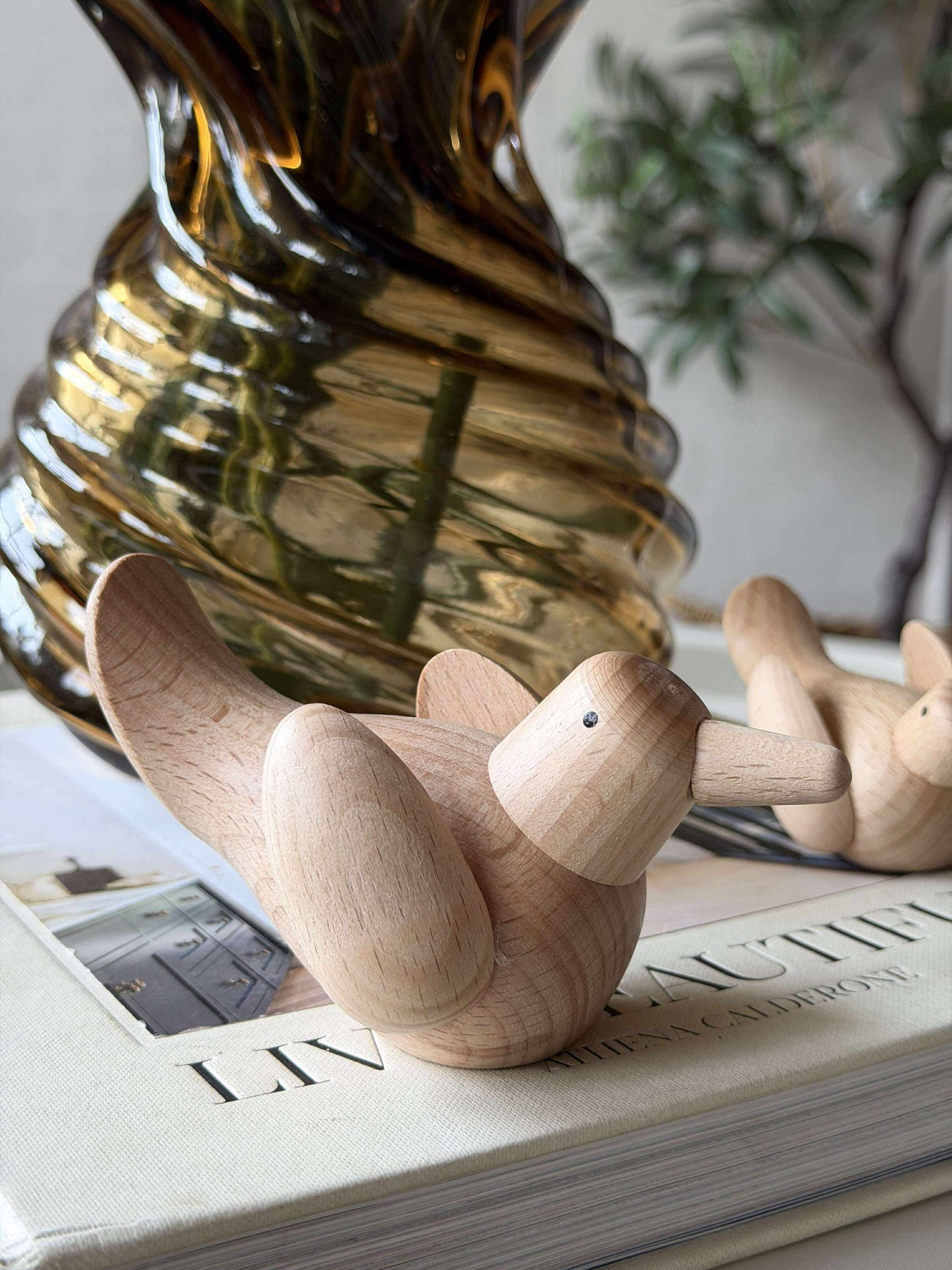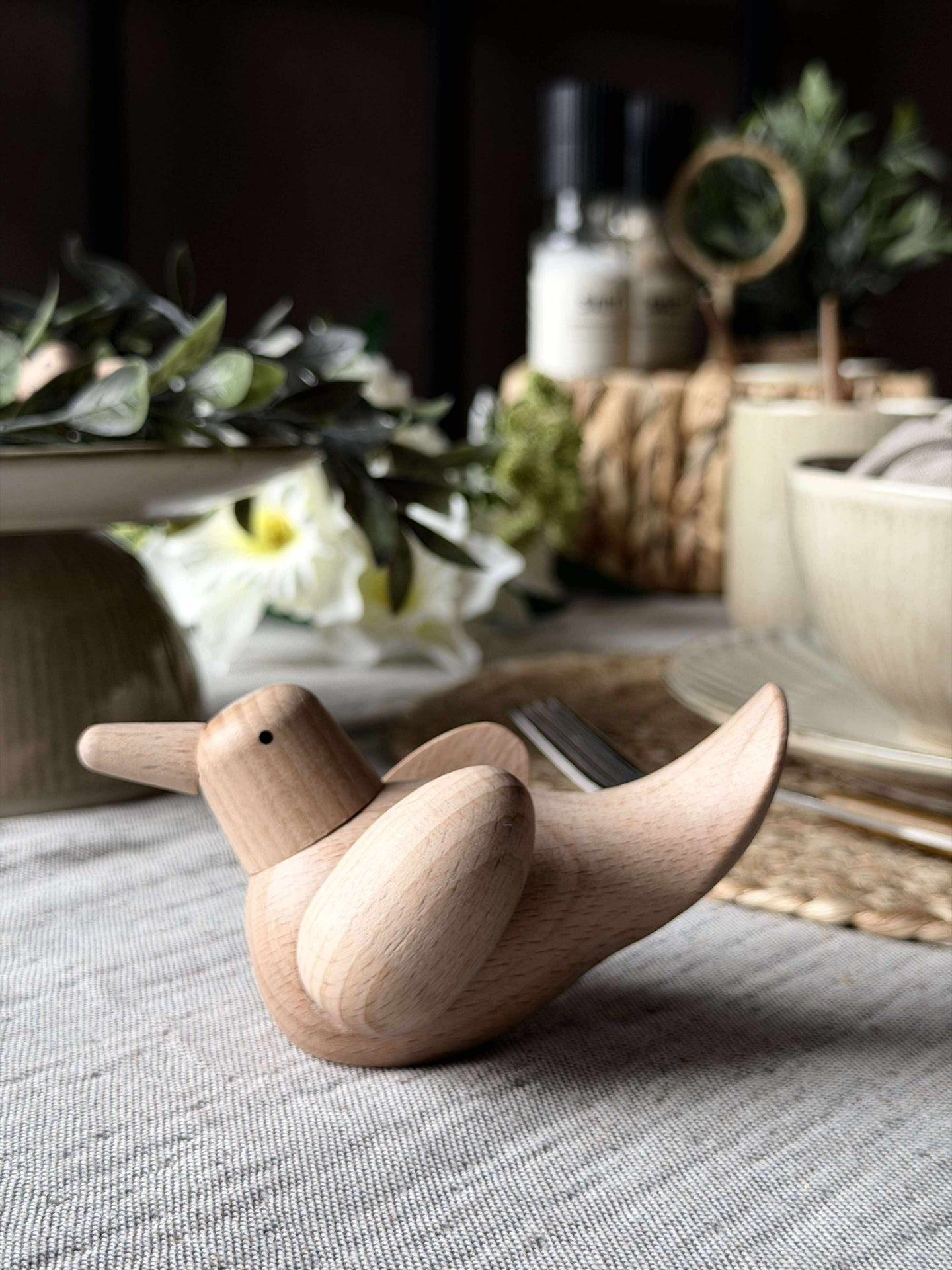 Träfågeln, tillverkad av äkta bokträ, erbjuder en naturlig och tidlös känsla som harmoniserar med olika inredningsstilar. Bokträets hållbarhet och styrka säkerställer en långvarig produkt, medan den naturfärgade ytan ger en varm och välkomnande atmosfär. Denna kombination av material och färg skapar ett lugnt och balanserat inslag i ditt hem, vilket bidrar till en trivsam miljö.
