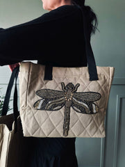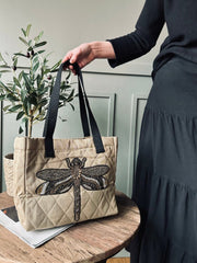 Denna quiltade väska är tillverkad av 100% bomullscanvas, vilket garanterar en hållbar och robust produkt. Bomullscanvas är känt för sin styrka och förmåga att motstå slitage, vilket gör att väskan håller länge. Dessutom är bomullscanvas ett naturligt material som är mjukt att röra vid, vilket ger en behaglig känsla när du bär väskan. Ge din vardag en touch av stil med Liten Shoppare – Trollslända. Låt denna rymliga och praktiska väska bli din pålitliga följeslagare i alla dina dagliga äventyr. Uppgradera din outfit och gör ditt liv enklare med denna stilfulla accessoar.