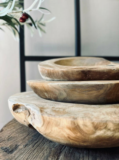 Skapa en unik och naturlig atmosfär i ditt hem med våra vackra Teakskålar. Låt naturens enkelhet ta plats i ditt kök och njut av en autentisk känsla varje dag. Ge dina favoriträtter den uppmärksamhet de förtjänar med våra rustika skålar!