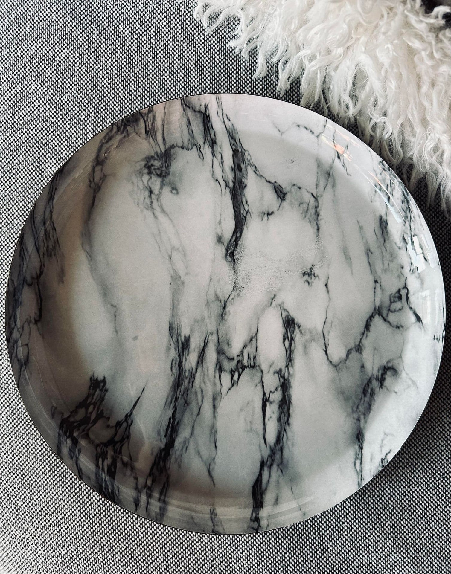 Detta ljusfat med marmorutseende är inte bara en praktisk detalj i hemmet, utan också en vacker inredningsdetalj. Marmormönstret ger en lyxig och modern känsla som passar i de flesta heminredningar. Dess stabila design gör att du kan placera ljus på den utan att oroa dig för att de ska välta. Ljusfatet skapar en mysig atmosfär och kan även användas som en elegant serveringsbricka.