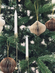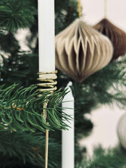Julgranljushållare i guld erbjuder en stilfull och praktisk lösning för att säkra ljus på din gran. Den gyllene färgen reflekterar ljus och ger en varm, inbjudande atmosfär i hemmet. Tillverkad för att passa de flesta standardljus ger denna ljushållare stabilitet och säkerhet, vilket minskar risken för olyckor samtidigt som den bidrar till en traditionell julstämning.