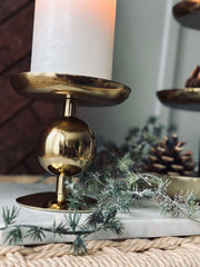 Upplev en harmonisk atmosfär med en ljushållare som kombinerar enkelhet och funktion. Denna guldiga produkt tillgodoser behovet av en stabil plats för blockljus, vilket ger ditt rum ett elegant och lugnande sken utan att överväldiga inredningen.