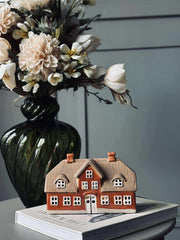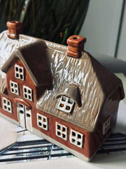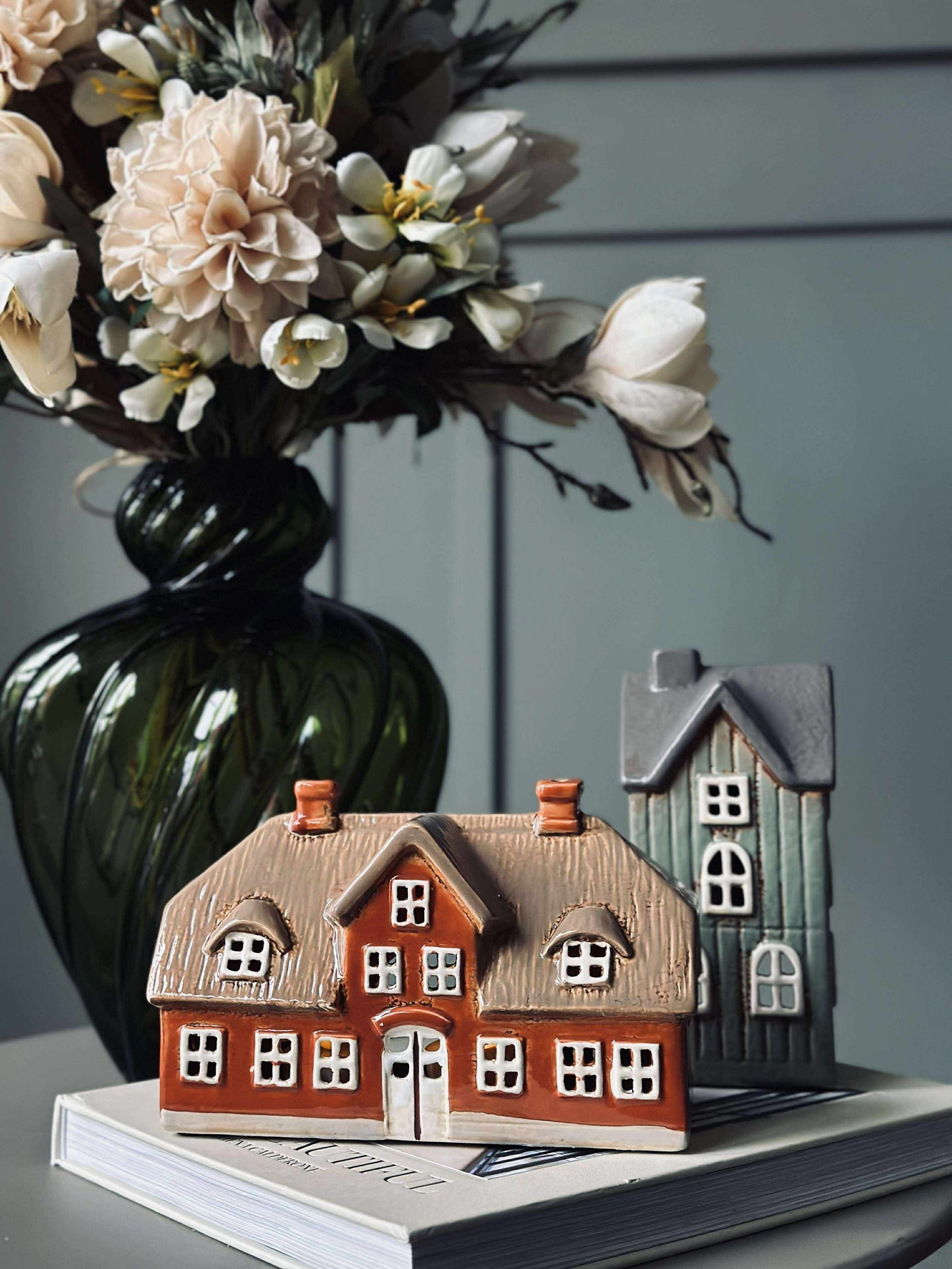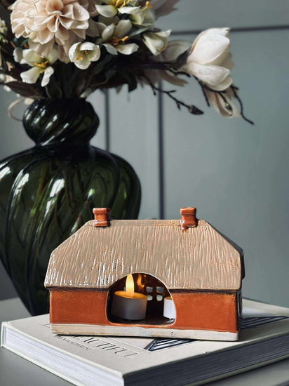 Lyshuset är tillverkat av keramik, vilket ger det en robust och hållbar konstruktion. Keramiken erbjuder en naturlig värmeisolering, vilket bidrar till en jämn och behaglig ljusspridning. Dessutom är materialet värmetåligt, vilket gör det säkert att använda med levande ljus. Den släta ytan är lätt att rengöra, vilket underlättar underhållet och bevarar lyshusets estetiska utseende över tid.