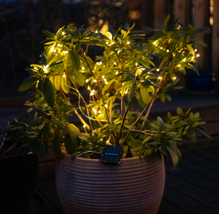 Solcellsljusets ljuskedja är utrustad med en tunn tråd som gör den både diskret och dekorativ. Den smala designen låter ljuskedjan smälta in i omgivningen, vilket bidrar till en subtil och stilren belysning. Detta gör den utmärkt för att skapa en inbjudande atmosfär utan att störa den befintliga inredningen. Ljuskedjan är enkel att placera och formar sig lätt efter olika ytor och former.