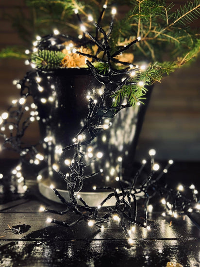 - Består av små, klara lampor grupperade tätt på svarta ledningar