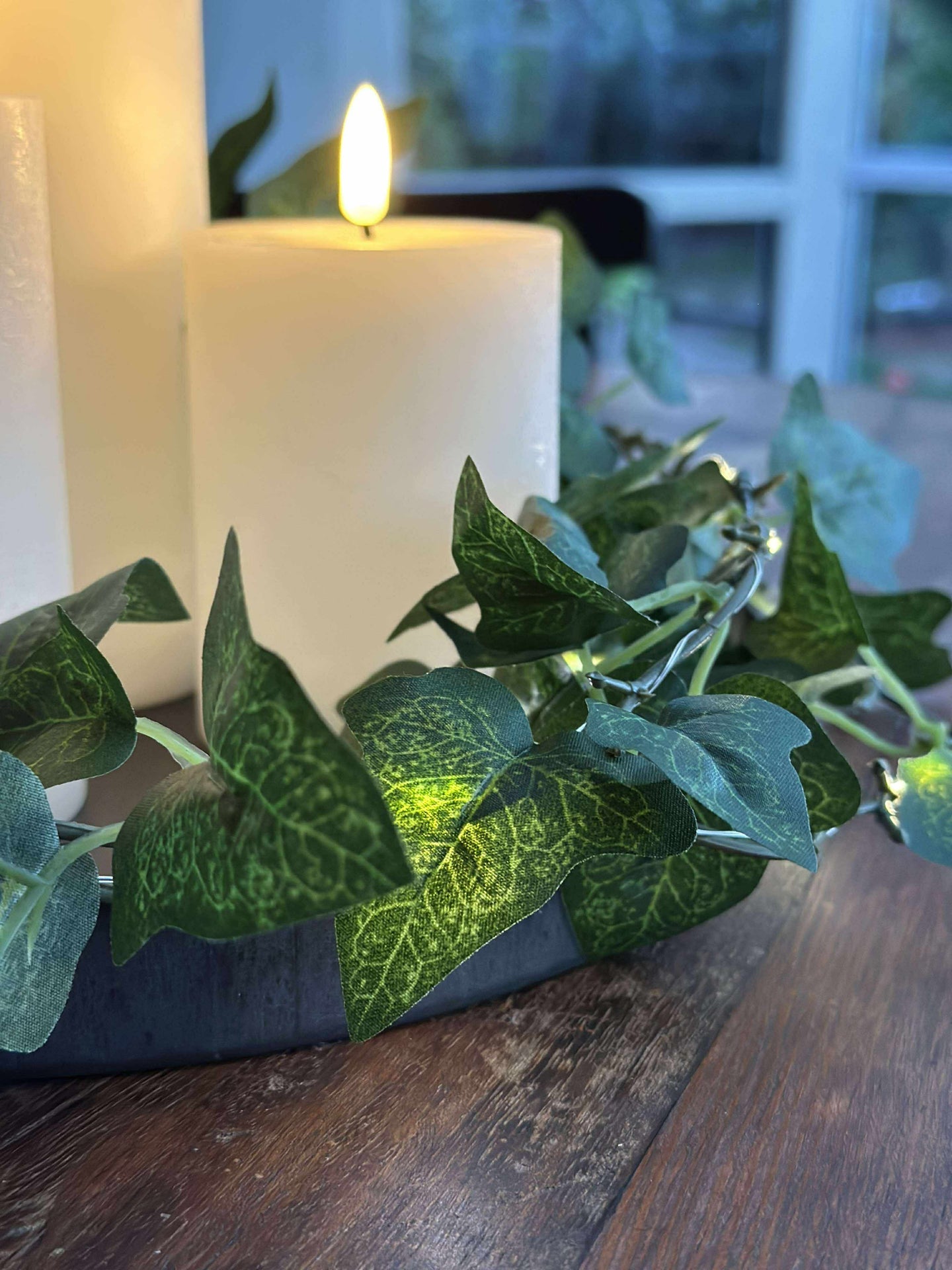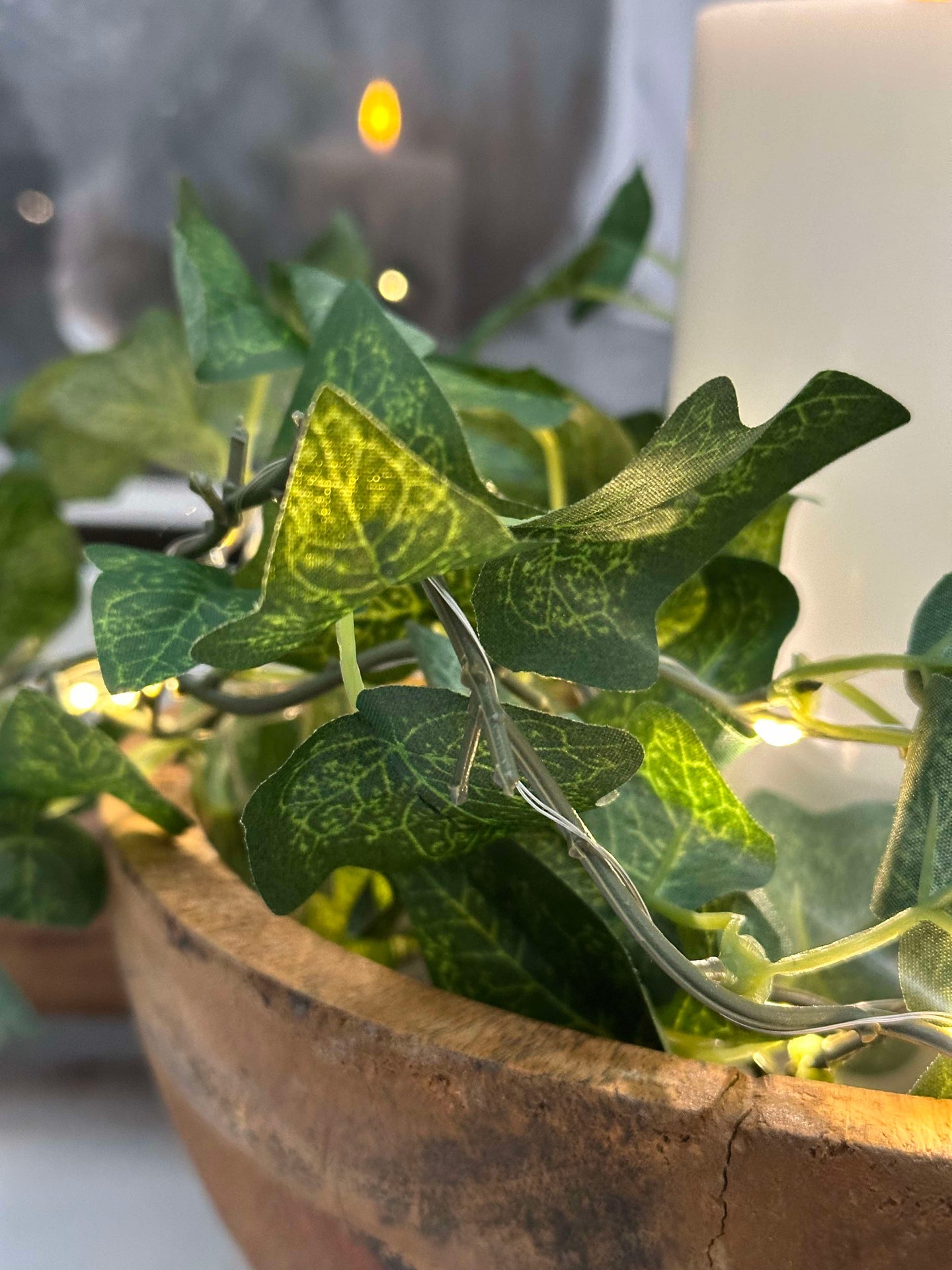Skapa en mysig och avslappnad atmosfär i ditt hem med denna vackra ljusslinga. Låt de konstgjorda murgrönabladen sprida en naturlig charm och skapa en ombonad känsla i ditt rum. Ge ditt hem en touch av elegans och njut av en lugn stund omgiven av skönhet.