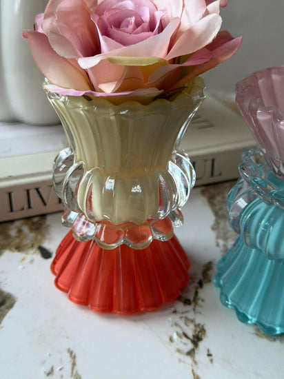 Ljusstake BON Vändbar - MIX är en dekorativ ljusstake i flerfärgat glas med ett lekfullt uttryck. Den är vändbar, så du kan använda den både till värmeljus och stearinljus – beroende på stämningen vid bordet.