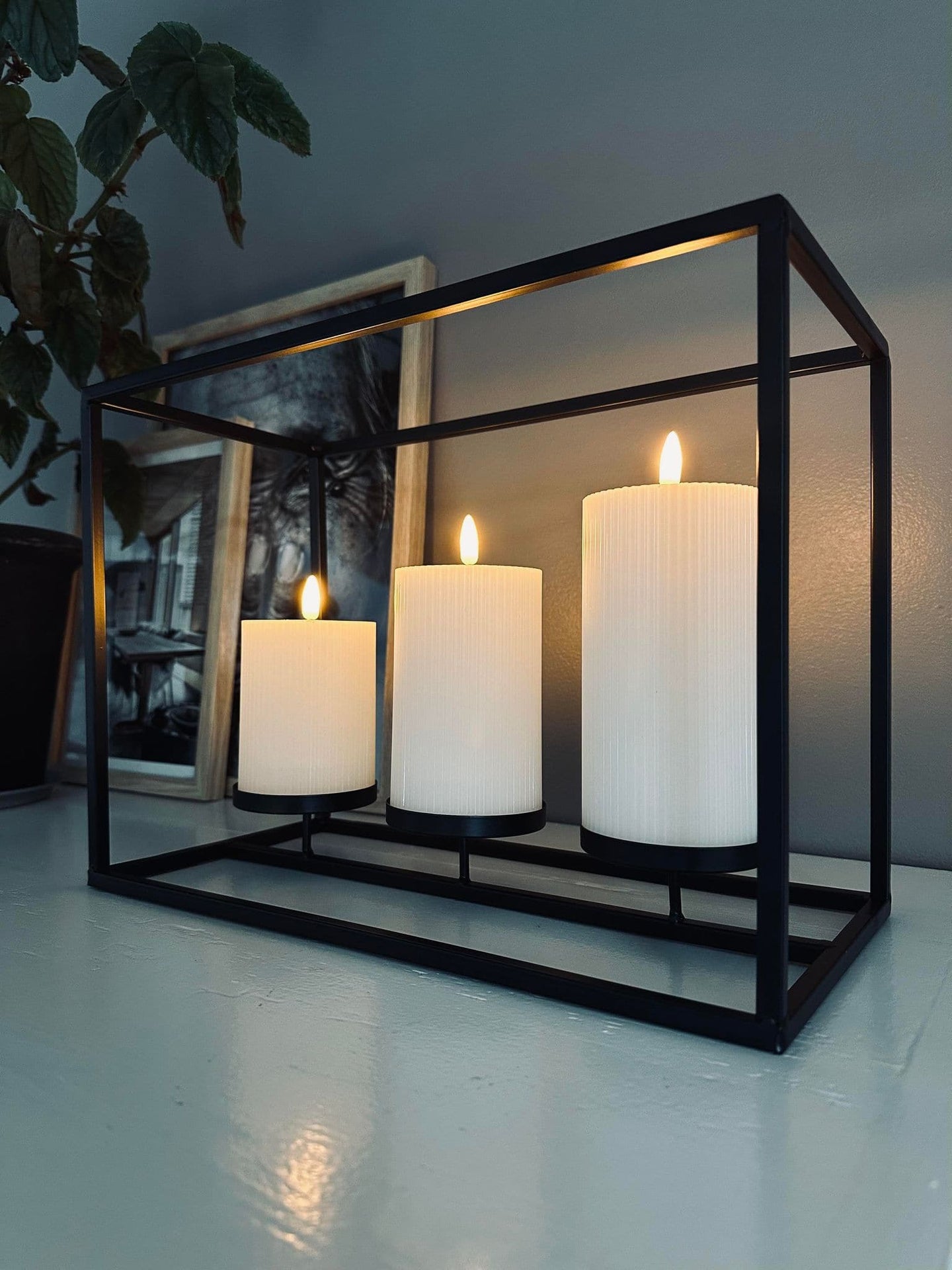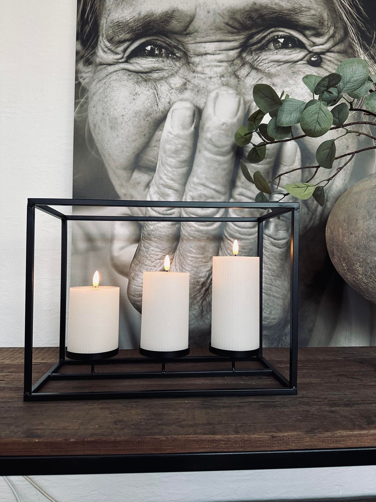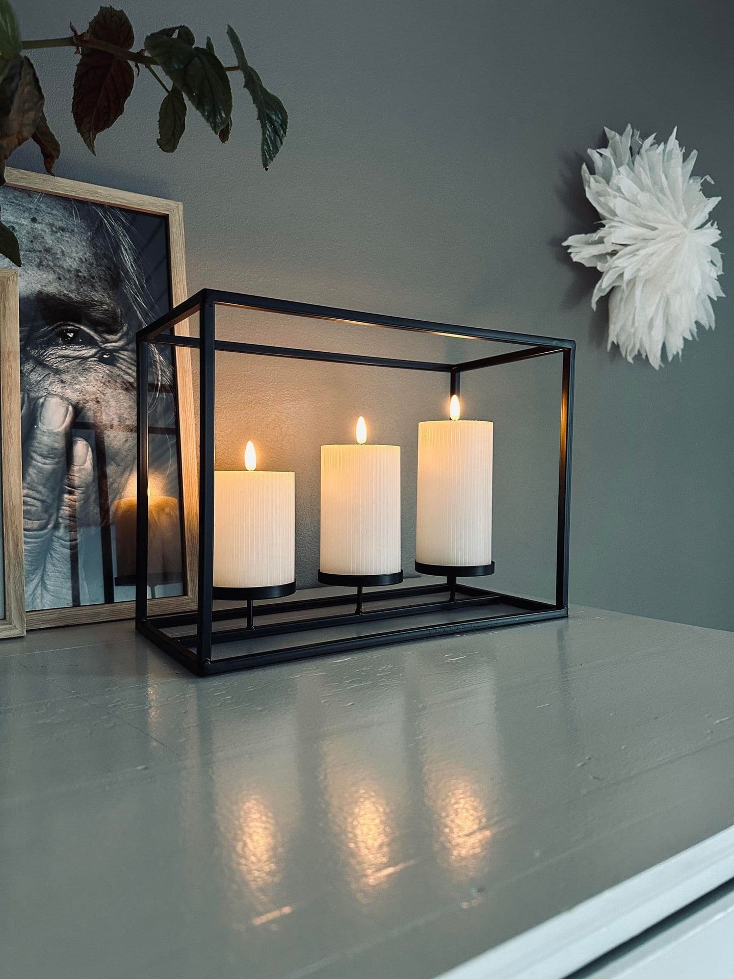 Letar du efter ett stilsäkert sätt att höja atmosfären i ditt hem? Denna robusta ljusstake för tre blockljus skapar omedelbart en mysig känsla och kompletterar din inredning med sin moderna och minimalistiska utformning.