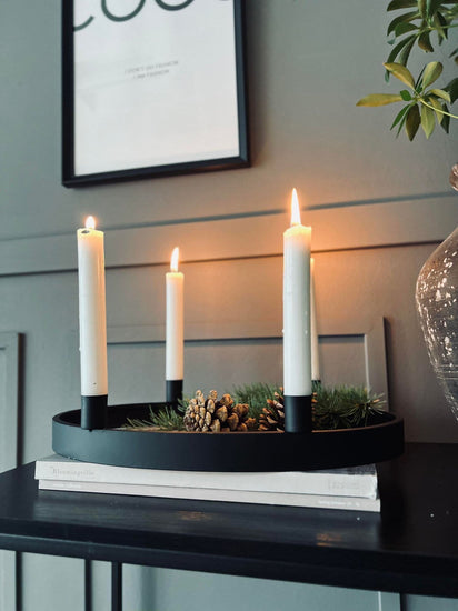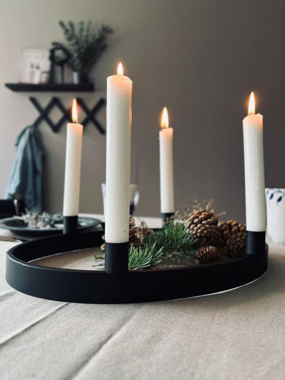 Vår ljusstake är tillverkad av svart järn, vilket ger den en robust och elegant känsla. Detta materialval bidrar till ljusstakens hållbarhet och långa livslängd, samtidigt som det ger en sofistikerad touch till din inredning. Den svarta järnstrukturen ger inte bara en känsla av stabilitet och styrka, utan också en tidlös estetik som kompletterar alla typer av heminredningar.