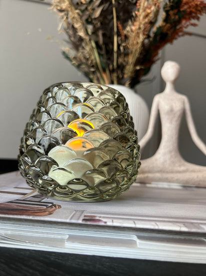 Letar du efter ett sätt att skapa mysig stämning hemma? Då är vår gröna kotte ljusstake XL ett utmärkt val. Den har en unik design som ger ett mjukt ljus och skapar en behaglig atmosfär i vilket rum som helst.