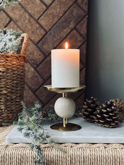 Trött på ljusstakar som inte passar ditt moderna hem? Ljusstake NOYA i beige erbjuder en stilren lösning för dina blockljus. Med sin subtila design och kompakta storlek blir den enkelt en del av din inredning utan att dominera rummet.