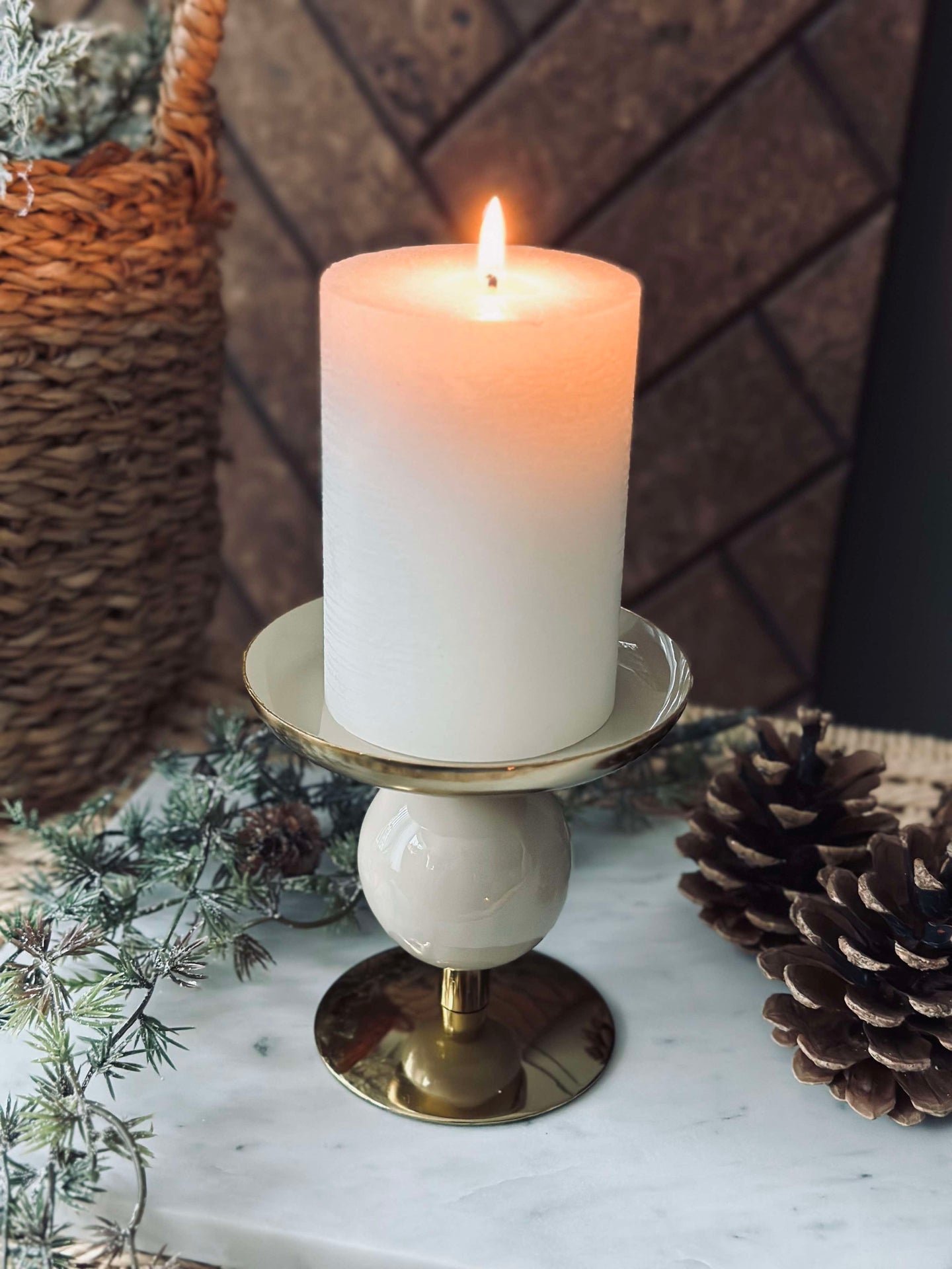 Skapa en fridfull atmosfär i ditt hem med ljusstaken NOYA. Låt dess stilrena design och subtila färg smälta samman med din moderna inredning. Upplev lugnet som sprids när blockljusen brinner i denna vackra ljusstake.