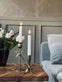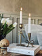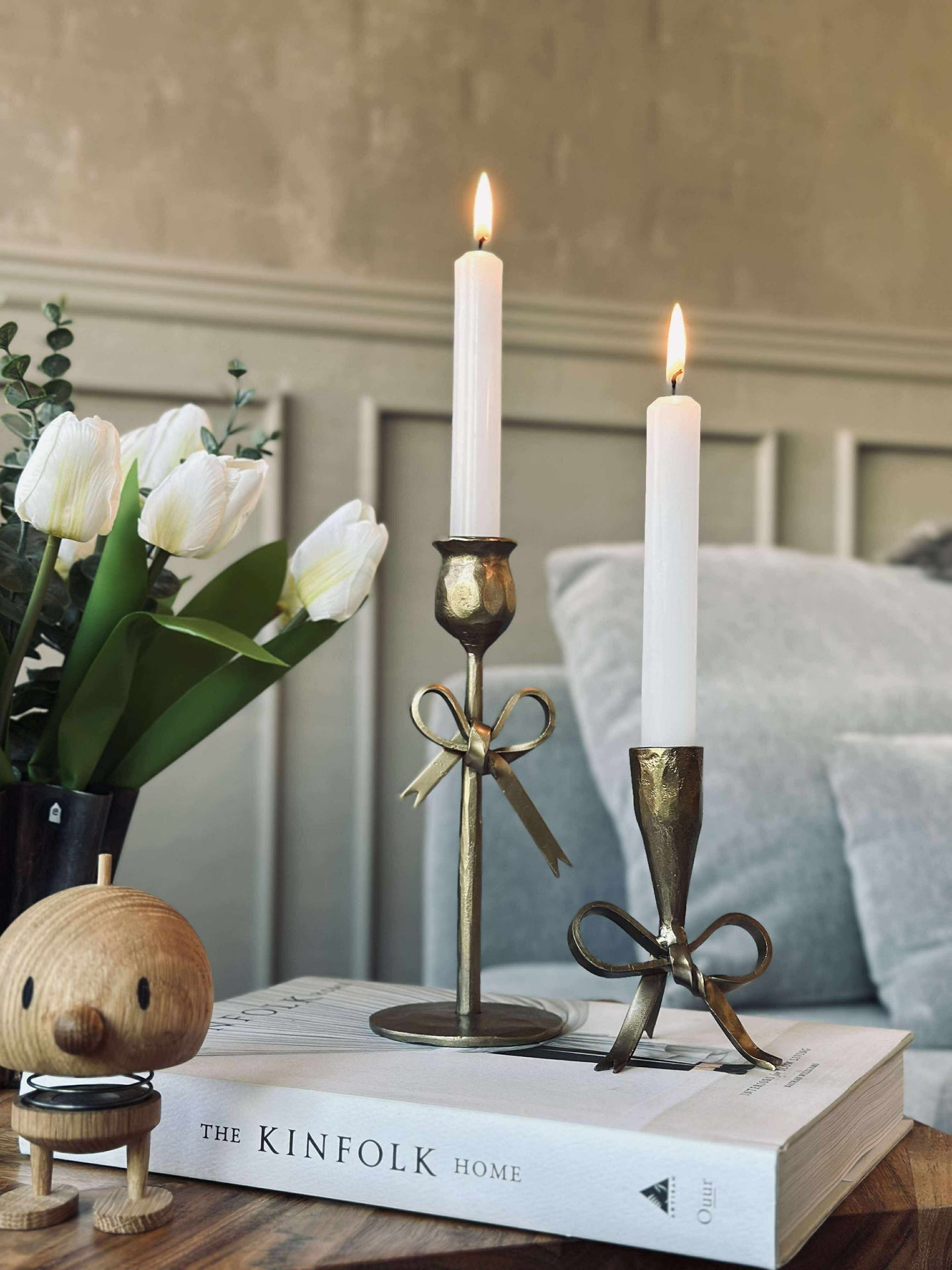 En rosett ljusstake som denna är enkel att styla på matbordet, i fönsterkarmen eller som en del av en liten uppställning med flera guldfärgade ljusstakar. Den fungerar också som en nätt ljushållare rosett och passar vanliga kronljus.