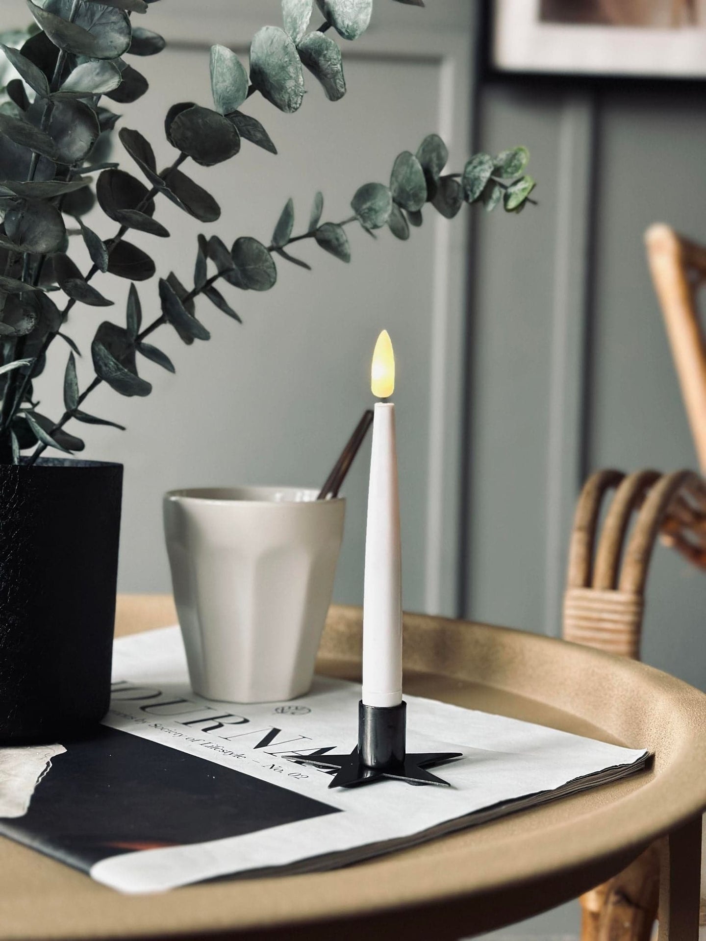 Skapa en mysig atmosfär med en modern touch i ditt hem idag med vår ljusstake Stjärna Svart – Värmeljus. Låt ljuset sprida sig och skapa en avslappnande stämning för dig själv och dina gäster. Upplev den unika känslan av lugn och harmoni.