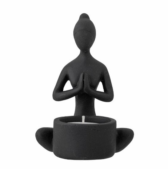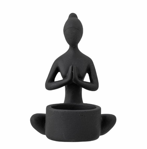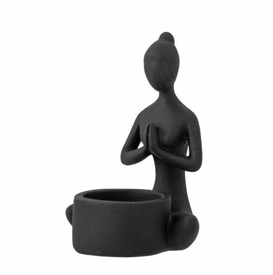 - Vacker ljusstake i form av en delikat staty föreställande en flicka i yogaposition med korsade ben