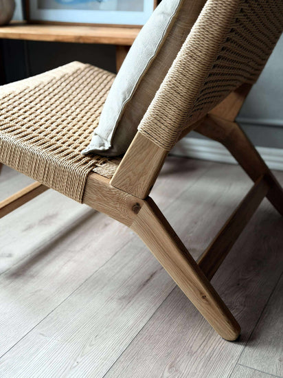 Loungestol - Ek är en loungestol i massiv ek med ett lugnt, nordiskt uttryck. Det flätade sätet och ryggstödet ger ett lätt och modernt uttryck, som står fint tillsammans med träets varma framtoning. En stol med ett enkelt formspråk, där materialen får vara i fokus.