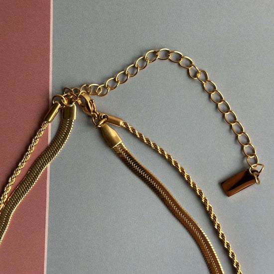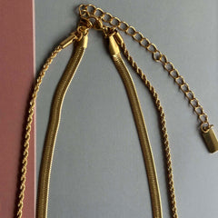 - Den platta snake-kedjan har en bredd på 4 mm och den snoede kedjan har en bredd på 2 mm