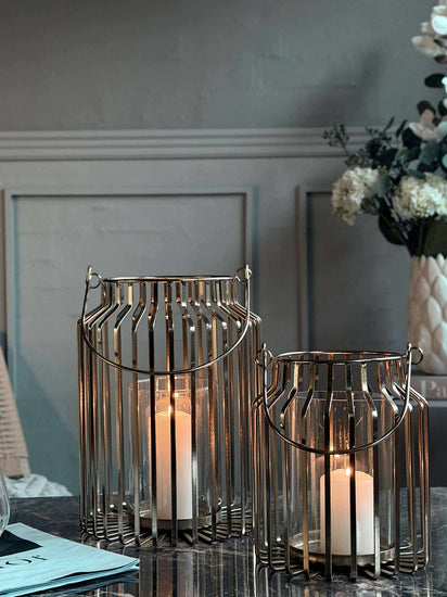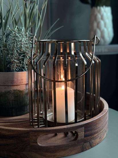 När du söker efter en stilren lösning för att ge ditt hem en varm och inbjudande stämning kan en ljuslykta vara svaret. Denna guldtonade lykta kombinerar enkelhet och funktionalitet, vilket gör den idealisk för att diskret komplettera din inredning.
