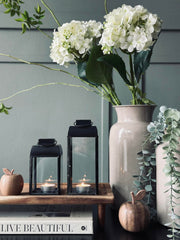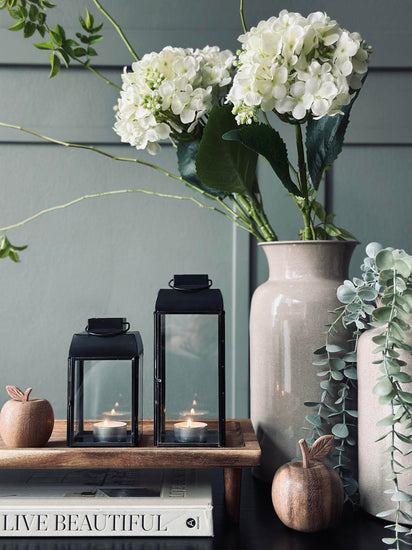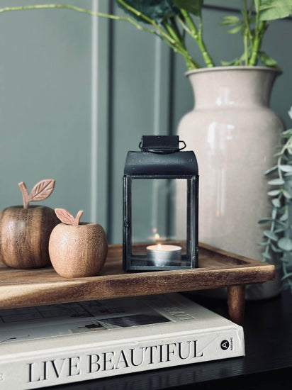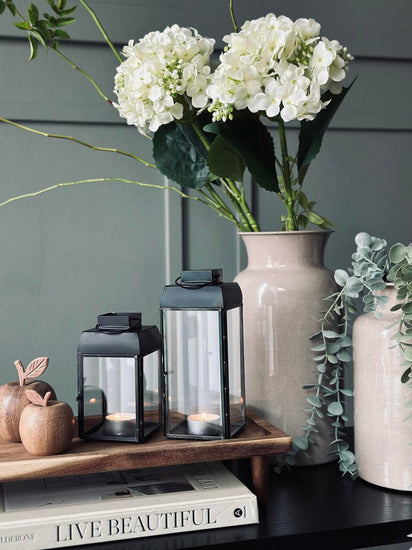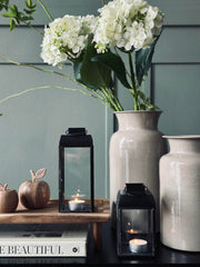 Metalllyktan erbjuds i två storlekar: liten och stor, vilket ger flexibilitet att passa olika utrymmen och behov. Den mindre modellen är idealisk för att skapa en intim atmosfär på mindre ytor som hyllor eller fönsterbrädor. Den större versionen är väl lämpad för att bli en central punkt i större rum, vilket ger ett inbjudande sken och förhöjer rummets karaktär.
