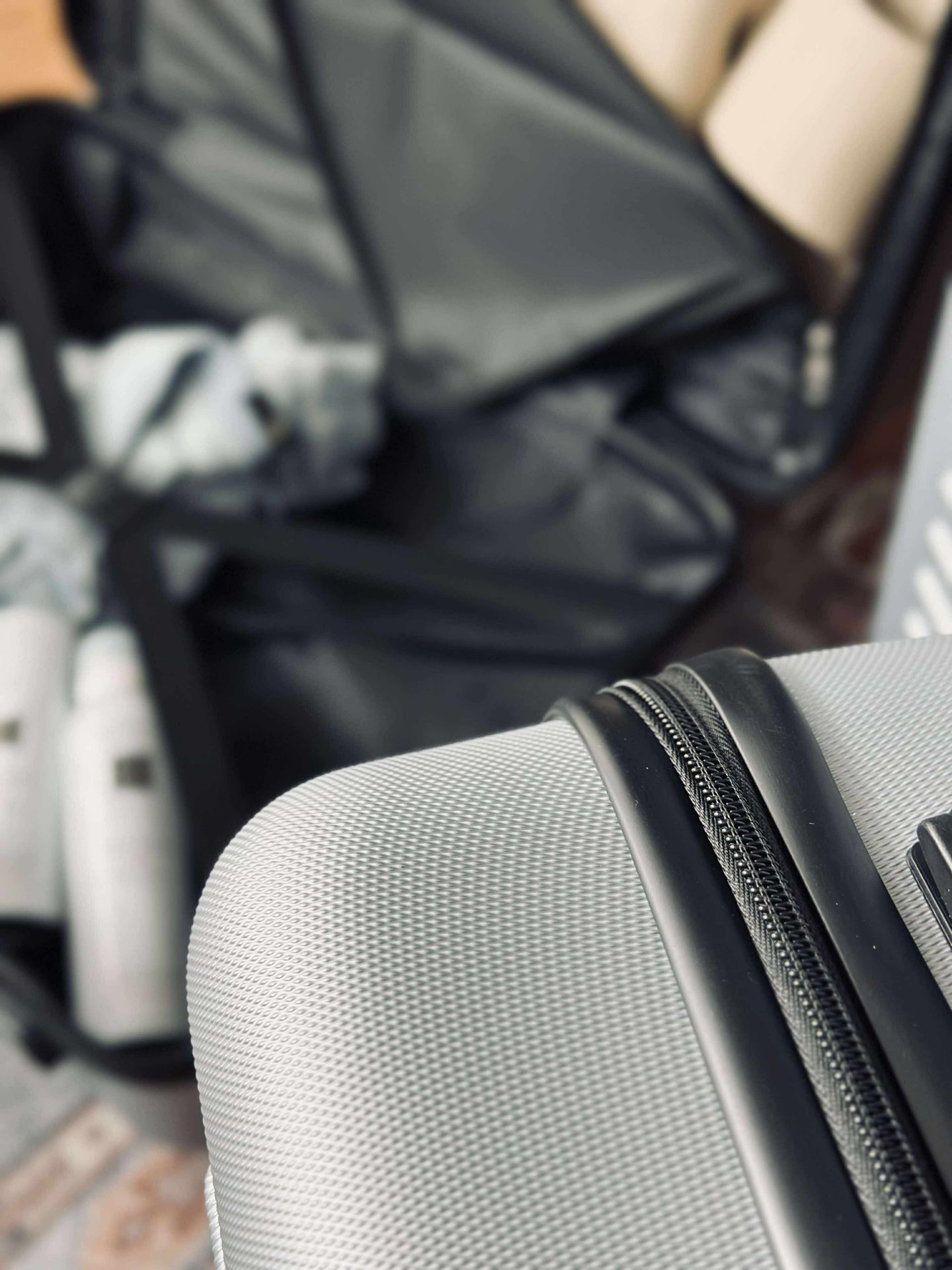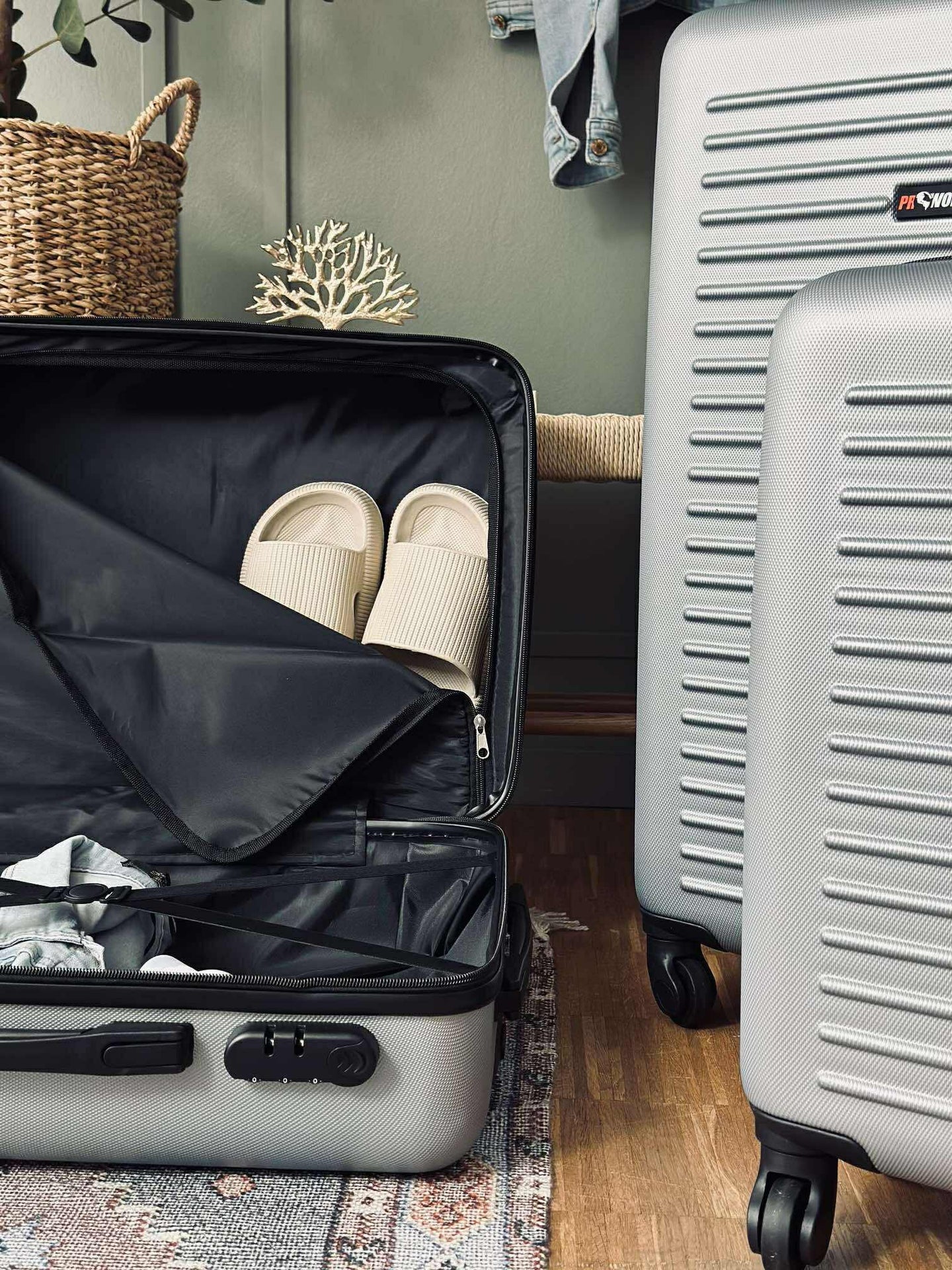 - Resväskorna kan packas in i varandra för att spara utrymme när de inte används