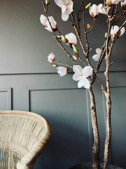 Låt detta magnoliaträd förvandla ditt hem till en fridfull oas. Skapa en avslappnad atmosfär och njut av den naturliga skönheten varje dag. Ge ditt hem en touch av subtil elegans med detta vackra inredningselement.