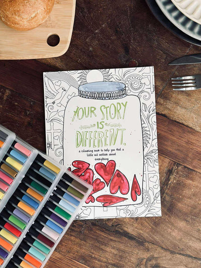 - Målarboken "Your Story is Different" innehåller 40 sidor med handritade illustrationer