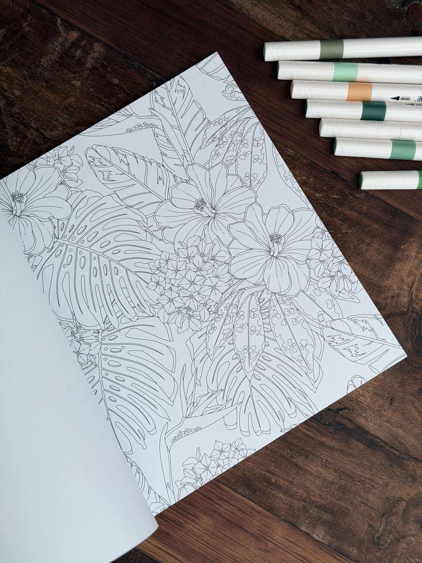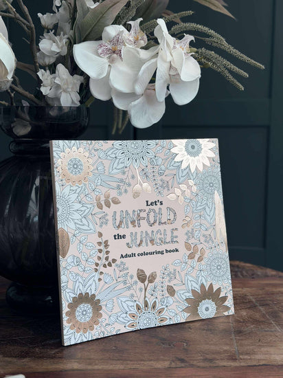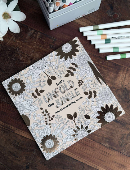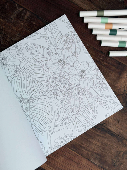 - Över 40 illustrationer av blommor, blad och botaniska element i målarboken "Let’s Unfold the Jungle."