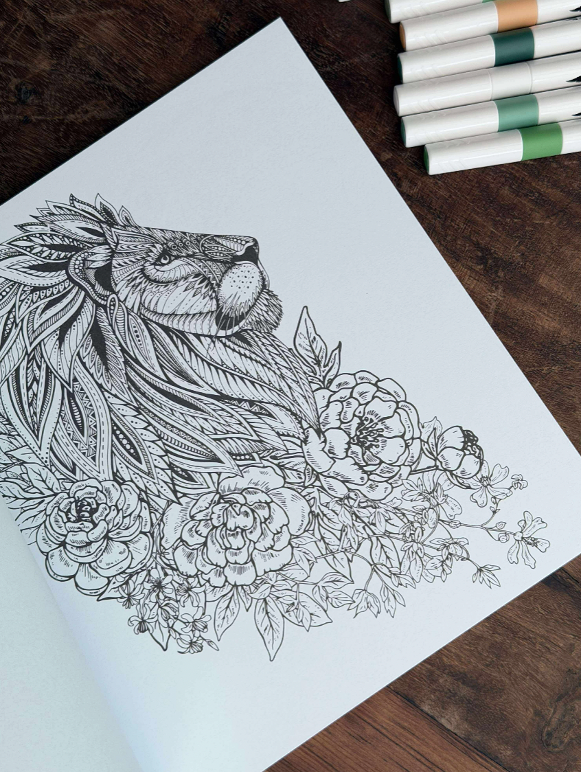 Ta en stund för dig själv och fördjupa dig i djungelns värld. Låt stressen rinna av medan du fyller sidorna med färg och fantasi. Oavsett om du är hemma eller på kontoret, är denna målarbok din perfekta följeslagare för att återfå lugn och kreativitet.