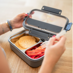Matlådan med två fack och ett extra rum i locket erbjuder en praktisk lösning för att organisera dina måltider. Genom att separera olika livsmedel kan du enkelt hålla sallader krispiga och varmrätter varma. Det extra rummet i locket är idealiskt för förvaring av bestick eller såser, vilket gör din matupplevelse smidigare och mer strukturerad.