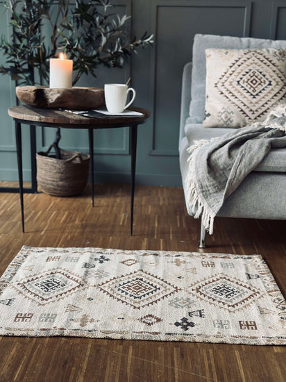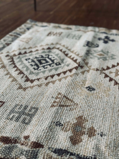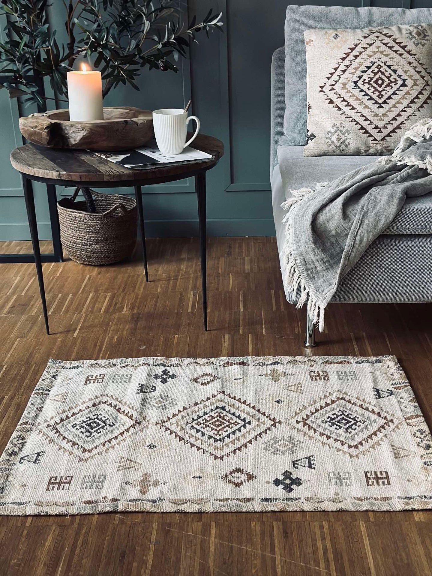 Gulvtäcket är tillverkat av bomull, vilket ger en mjuk och behaglig känsla under fötterna. Materialet är naturligt andningsbart, vilket bidrar till ett bättre inomhusklimat genom att absorbera fukt och reglera temperaturen. Dessutom är bomull hållbart och enkelt att rengöra, vilket gör det till ett praktiskt val för hem med husdjur eller barn.