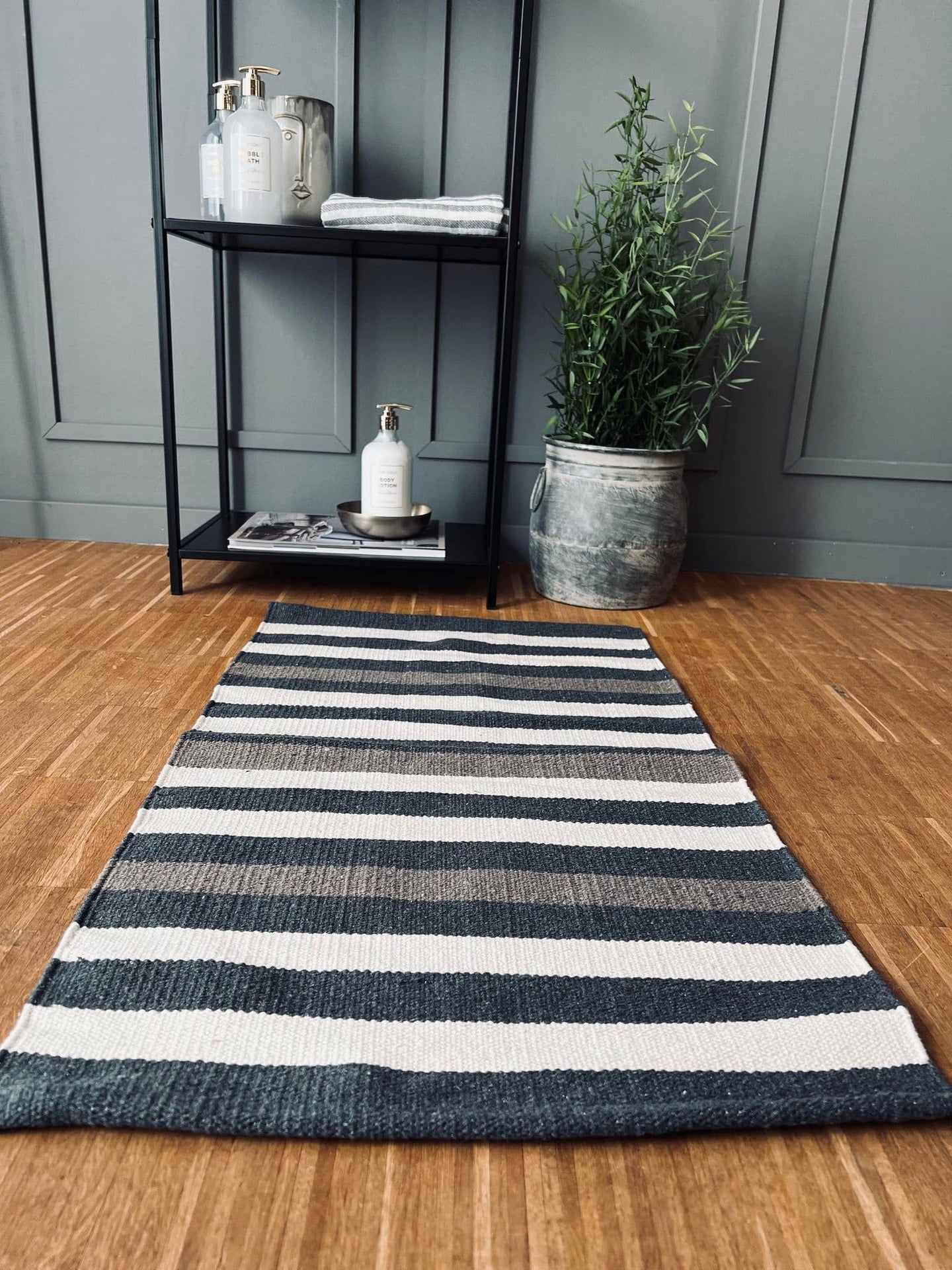Vår badmatta är tillverkad av återvunnen bomull. Det innebär att du inte bara får en mjuk och behaglig matta att sätta fötterna på, utan också gör ett miljövänligt val. Återvunnen bomull hjälper till att minska mängden avfall och sparar värdefulla naturresurser. Dessutom ger det badmattan en unik och karaktäristisk textur.