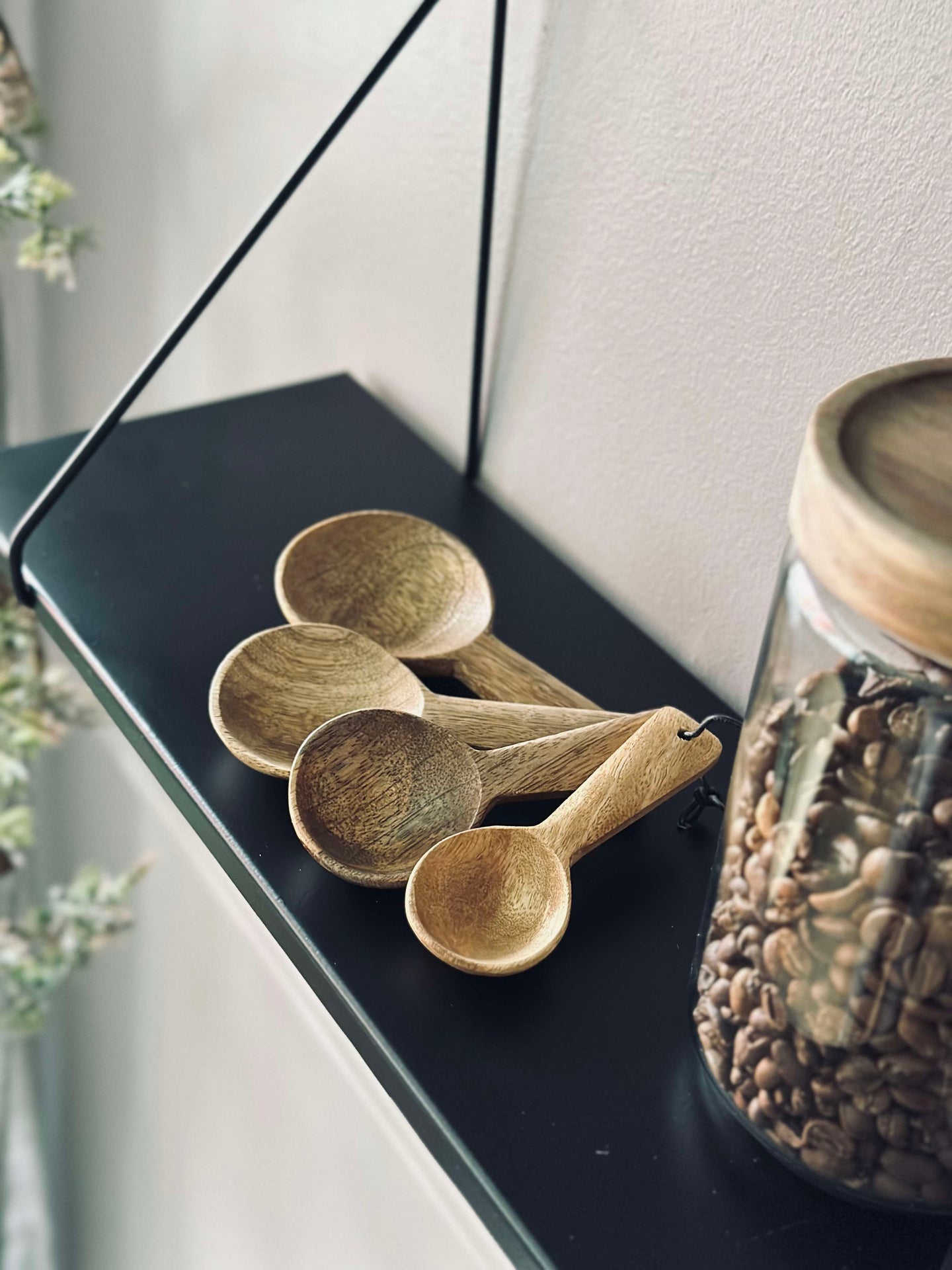 Dessa måttskedar är tillverkade av mangoträ, vilket ger en naturlig och varm känsla i köket. Mangoträ är känt för sin hållbarhet, vilket gör att skedarna kan användas under lång tid utan att förlora sin funktionalitet. Dessutom ger det speciella träet varje sked en individuell karaktär, vilket bidrar till en personlig touch i matlagningen.