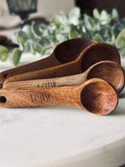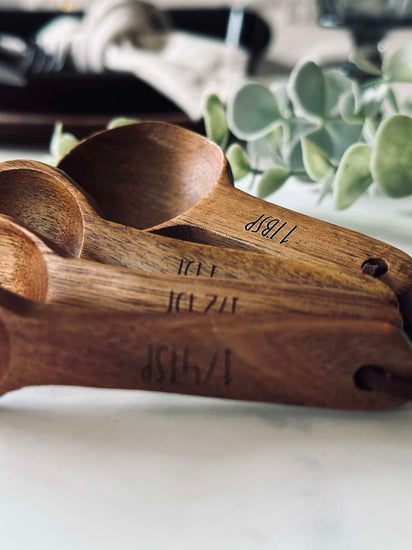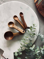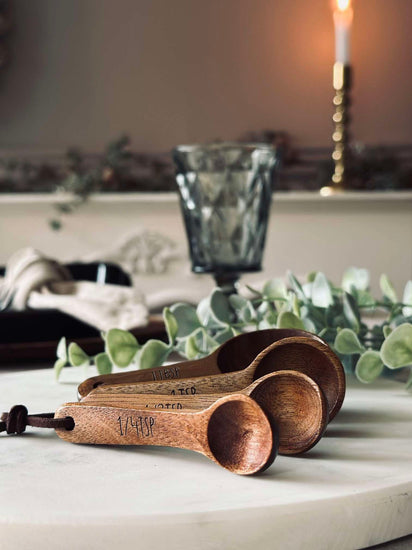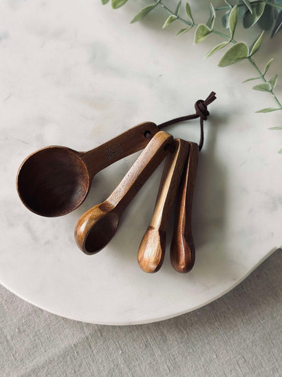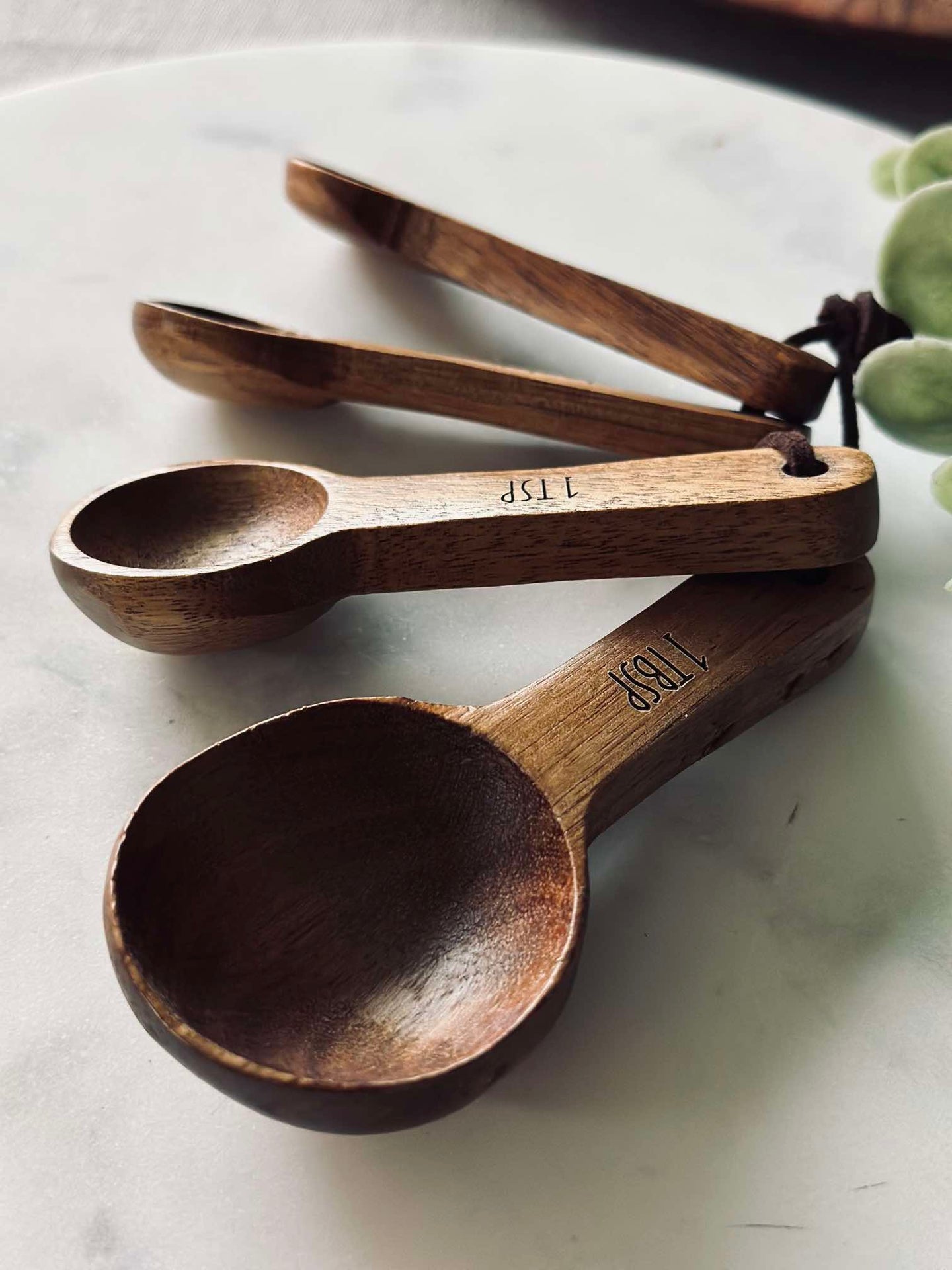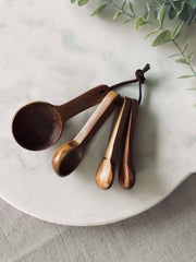 Hantera kökets dagliga behov med ett set måttskedar i en naturlig finish som erbjuder precis rätt storlek för alla recept. Utmärkt för dem som söker hållbara och funktionella verktyg för noggrann mätning i matlagning och bakning.