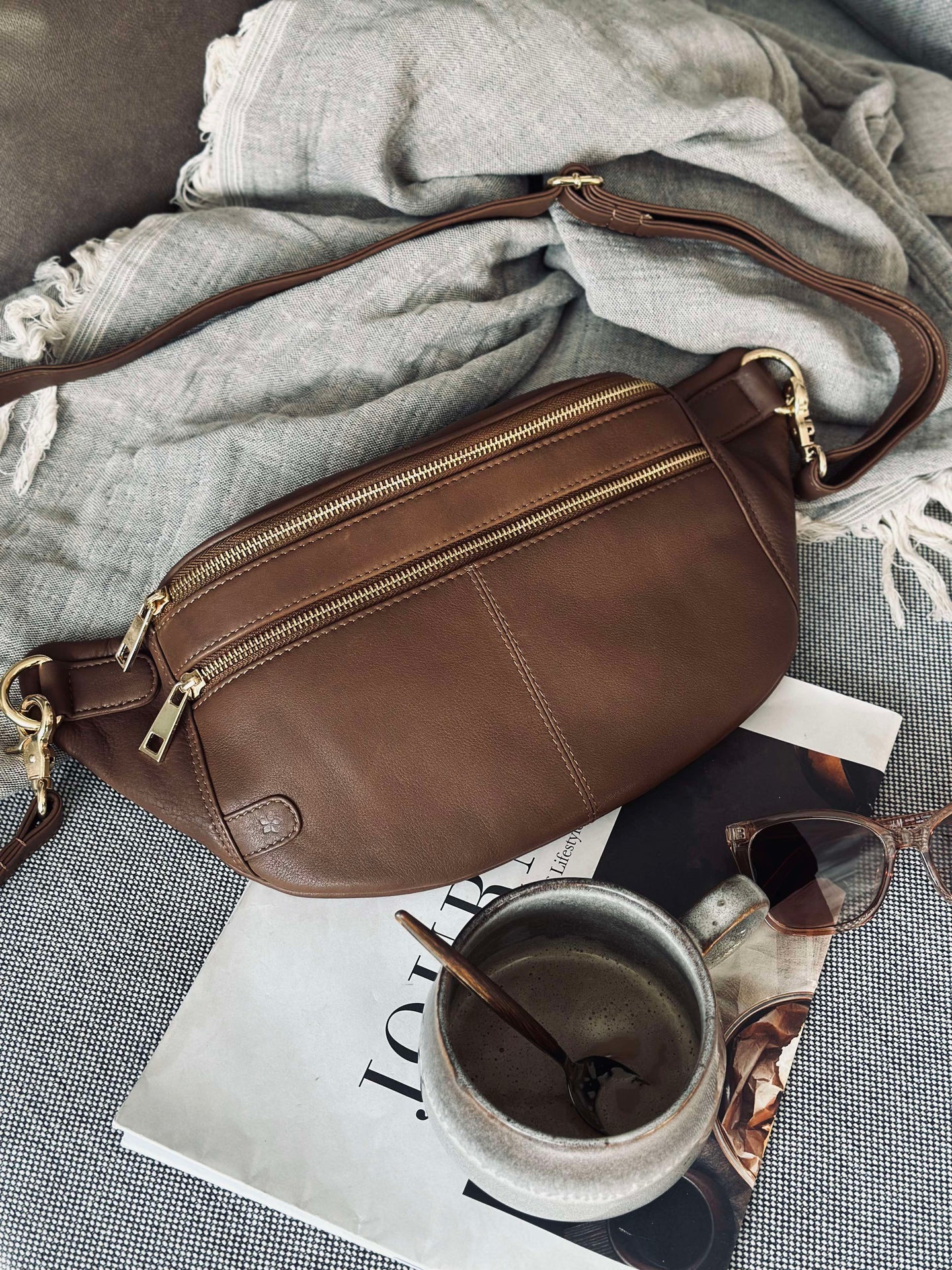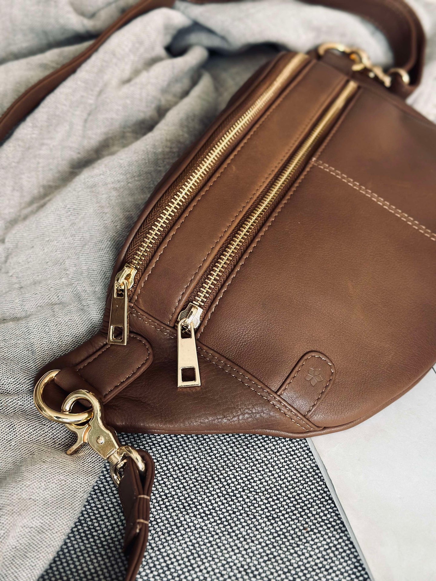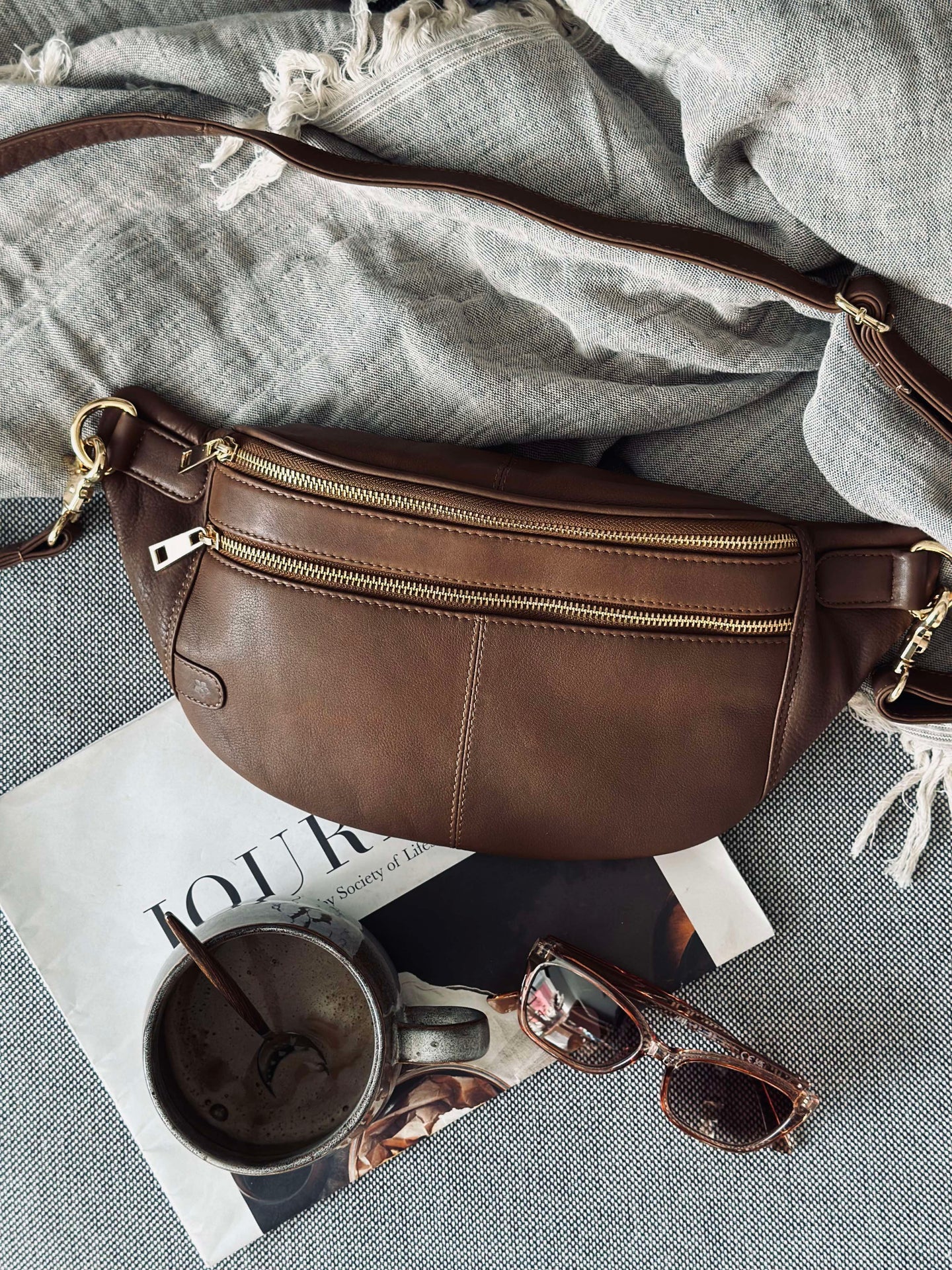 Håll dina viktigaste saker nära och säkra när du är på språng. Midjeväska Astrid i kaffe/guld kombinerar stil och funktion, vilket gör den idealisk för både vardag och resor. En justerbar rem säkerställer en bekväm anpassning.