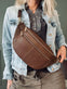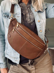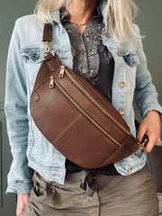Midjeväskan är tillverkad av 100 % äkta kohud, vilket ger en hållbar och långvarig användning. Materialet är robust och motståndskraftigt mot slitage, vilket säkerställer att väskan håller sig i gott skick över tid. Dessutom ger kohuden en naturlig och tidlös estetik som passar olika stilar och tillfällen.