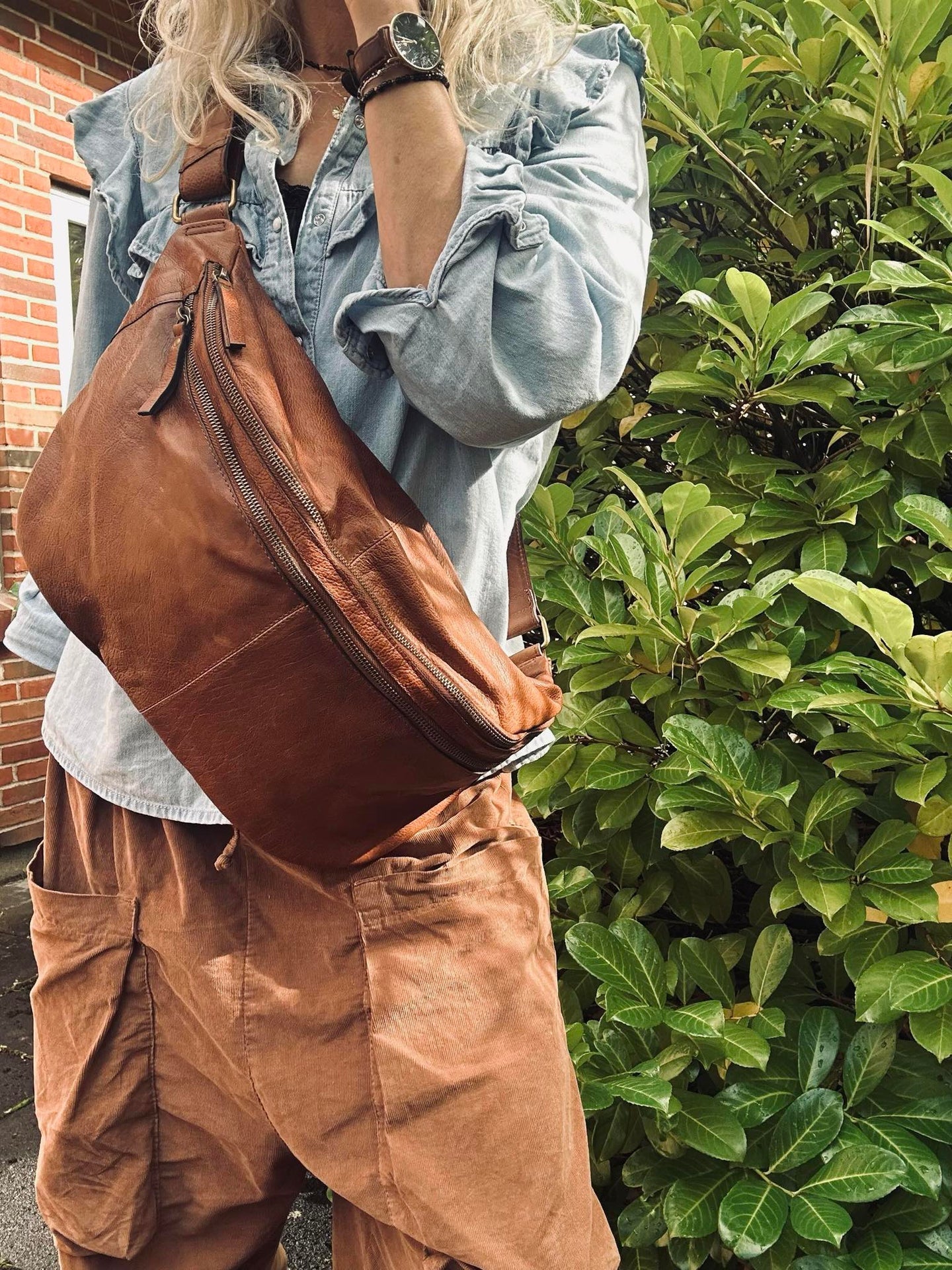 Midjeväskan är tillverkad av Urban-läder, ett naturligt slipat koläder som bevarar originalnarvmönstret och har en lätt vaxad yta. Detta material ger väskan ett vintageutseende som åldras vackert över tid. Urban-läder kombinerar hållbarhet med en visuell estetik som tilltalar dem som uppskattar en klassisk och autentisk stil i sina accessoarer.
