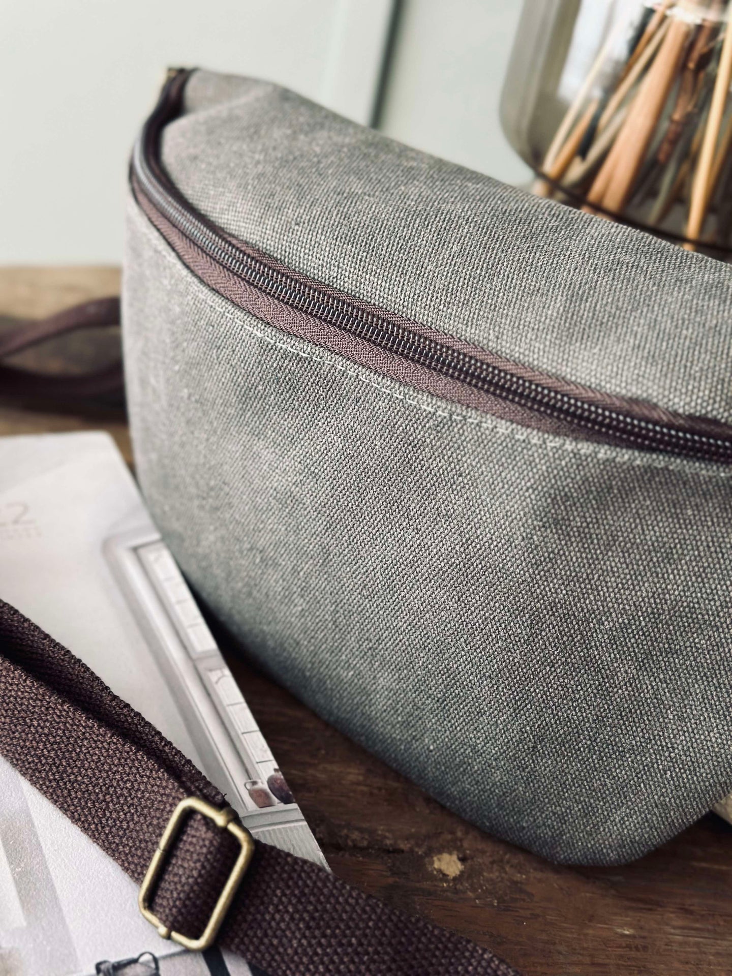 Midjeväskan är tillverkad av slitstark canvas, vilket gör den robust och hållbar för daglig användning. Canvasmaterialet är också lätt att rengöra, vilket gör att väskan bibehåller sitt fräscha utseende längre. Dessutom ger canvasen en naturlig känsla och ett tidlöst utseende som passar många olika stilar. Materialet är även känt för sin förmåga att stå emot slitage och väderförhållanden.