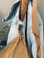 - Kan bäras som crossbody, utrustad med silverspännen och dragkedja